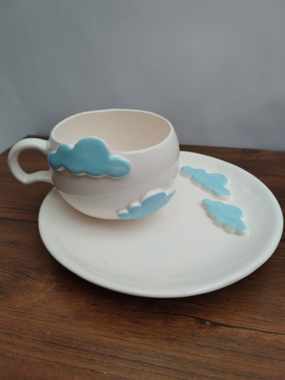 فنجان سرامیکی الهامگرفته از آسمان و ابر، با ابرهای آبی برجسته که روی بدنه کار شدهاند، حس آرامش و خیالانگیزی را به میز شما میآورد. این فنجان دستساز انتخابی عالی برای کسانی است که به جزئیات لطیف و طراحیهای فانتزی علاقه دارند.
