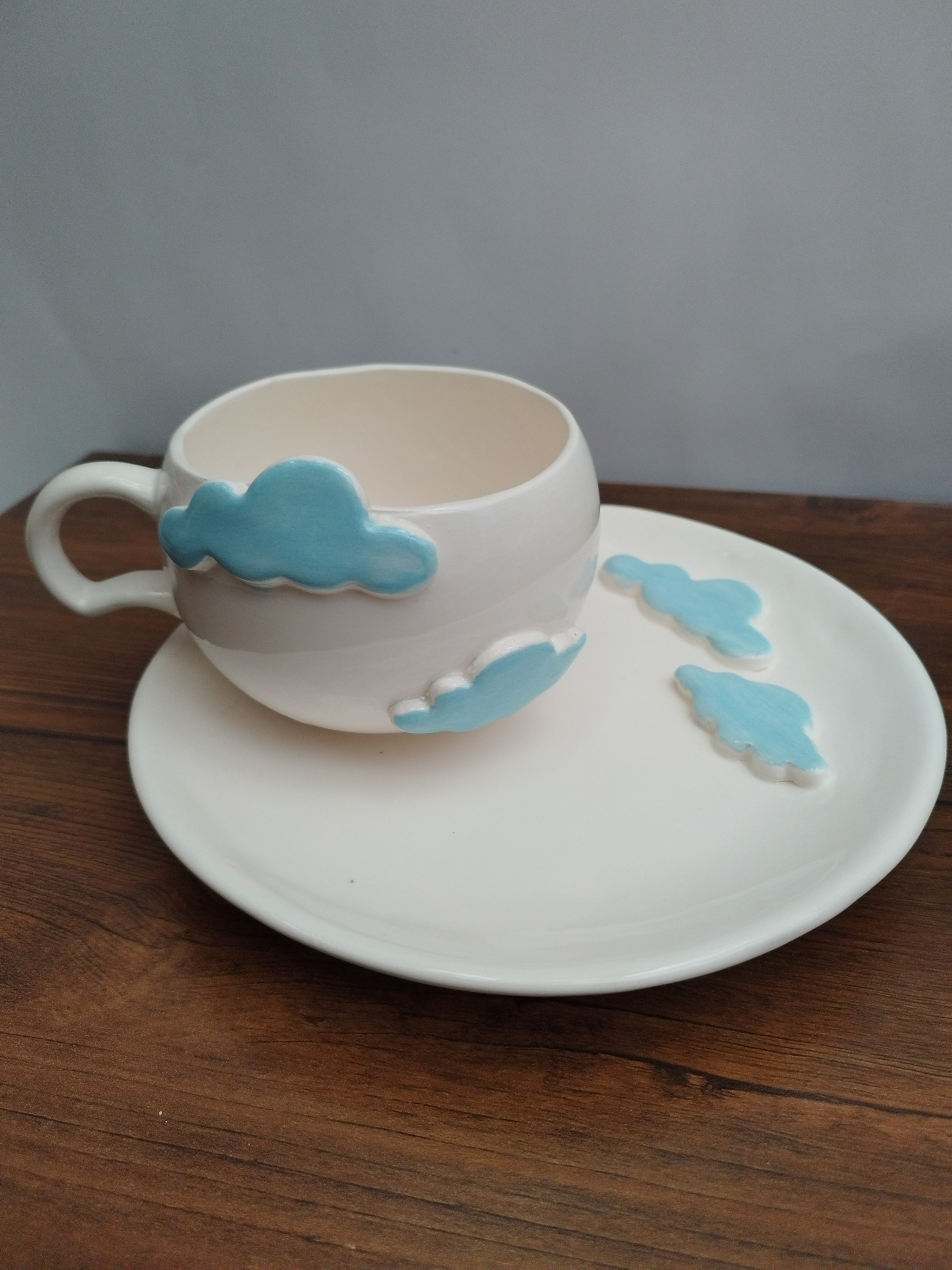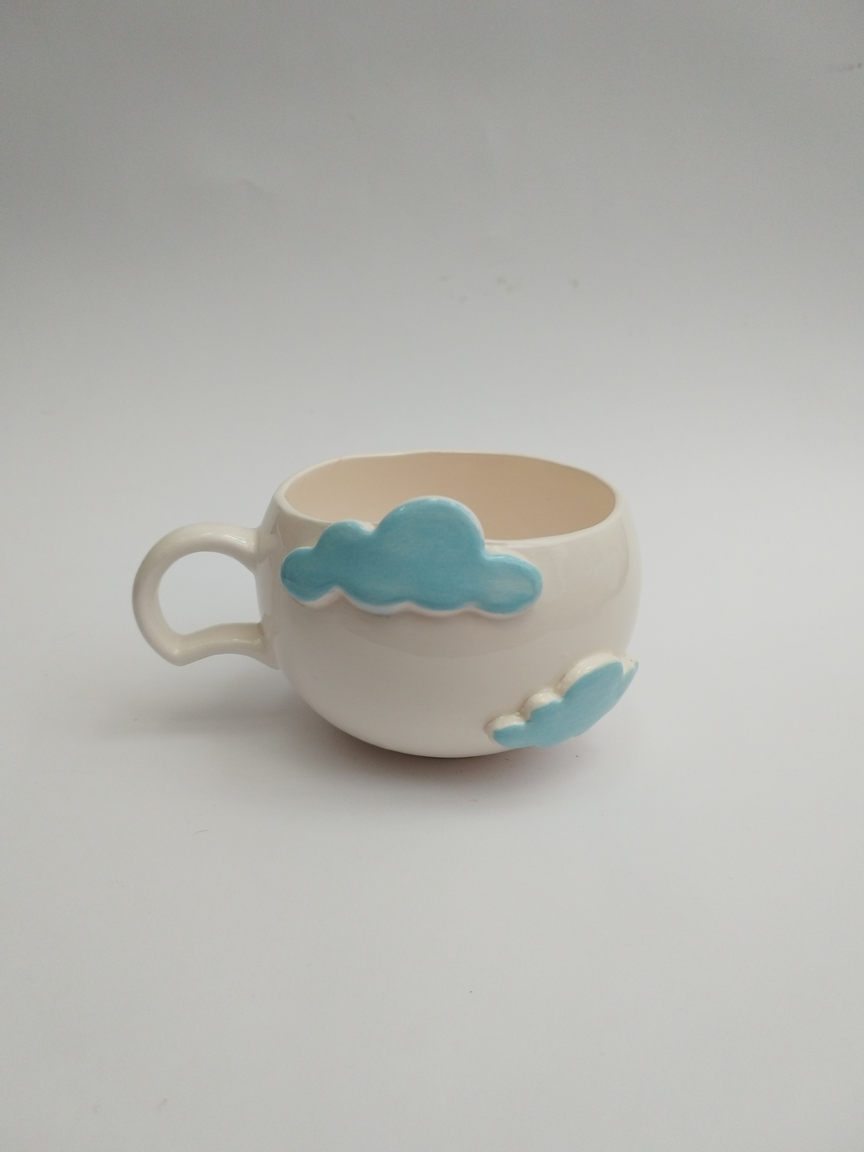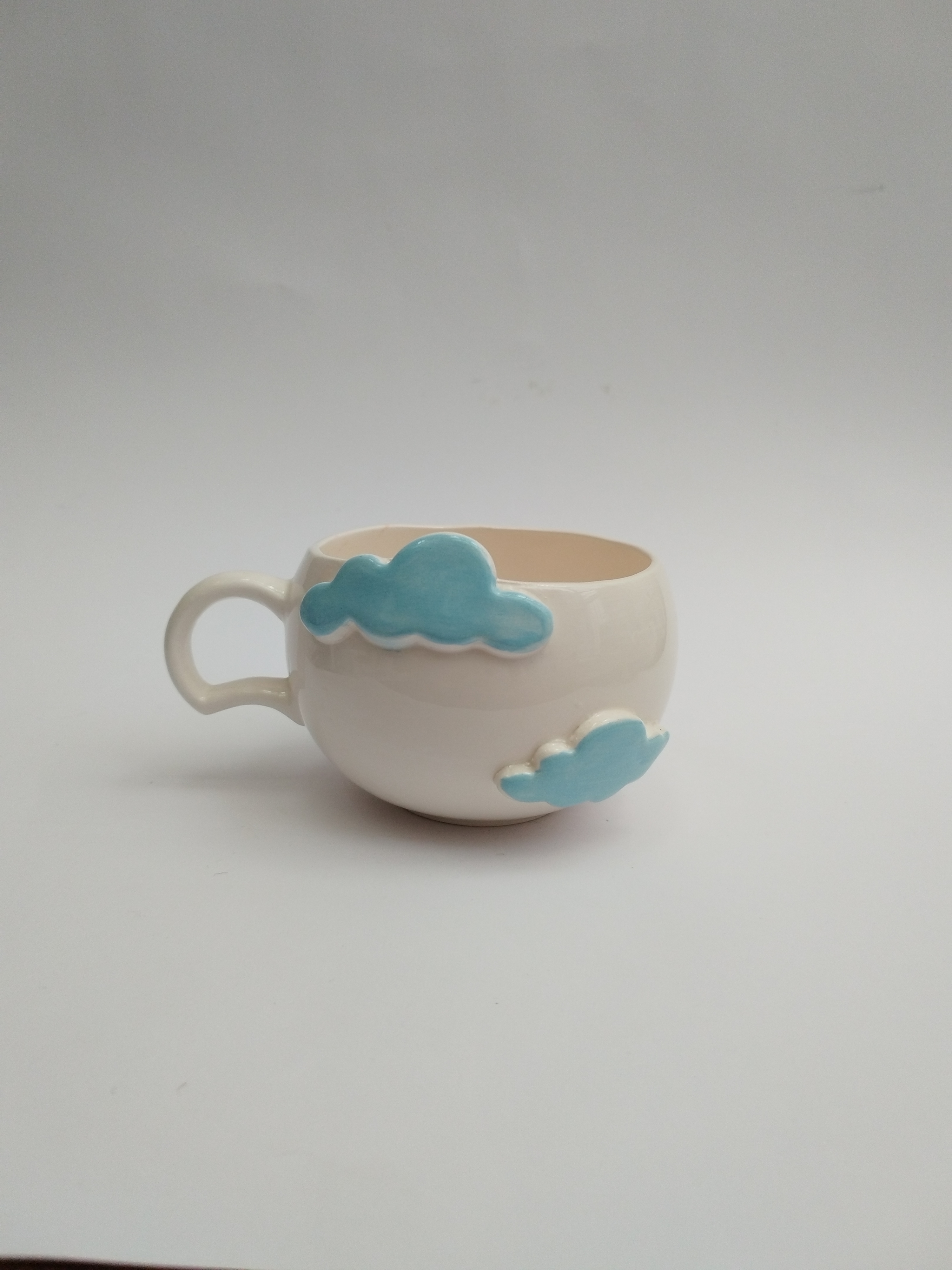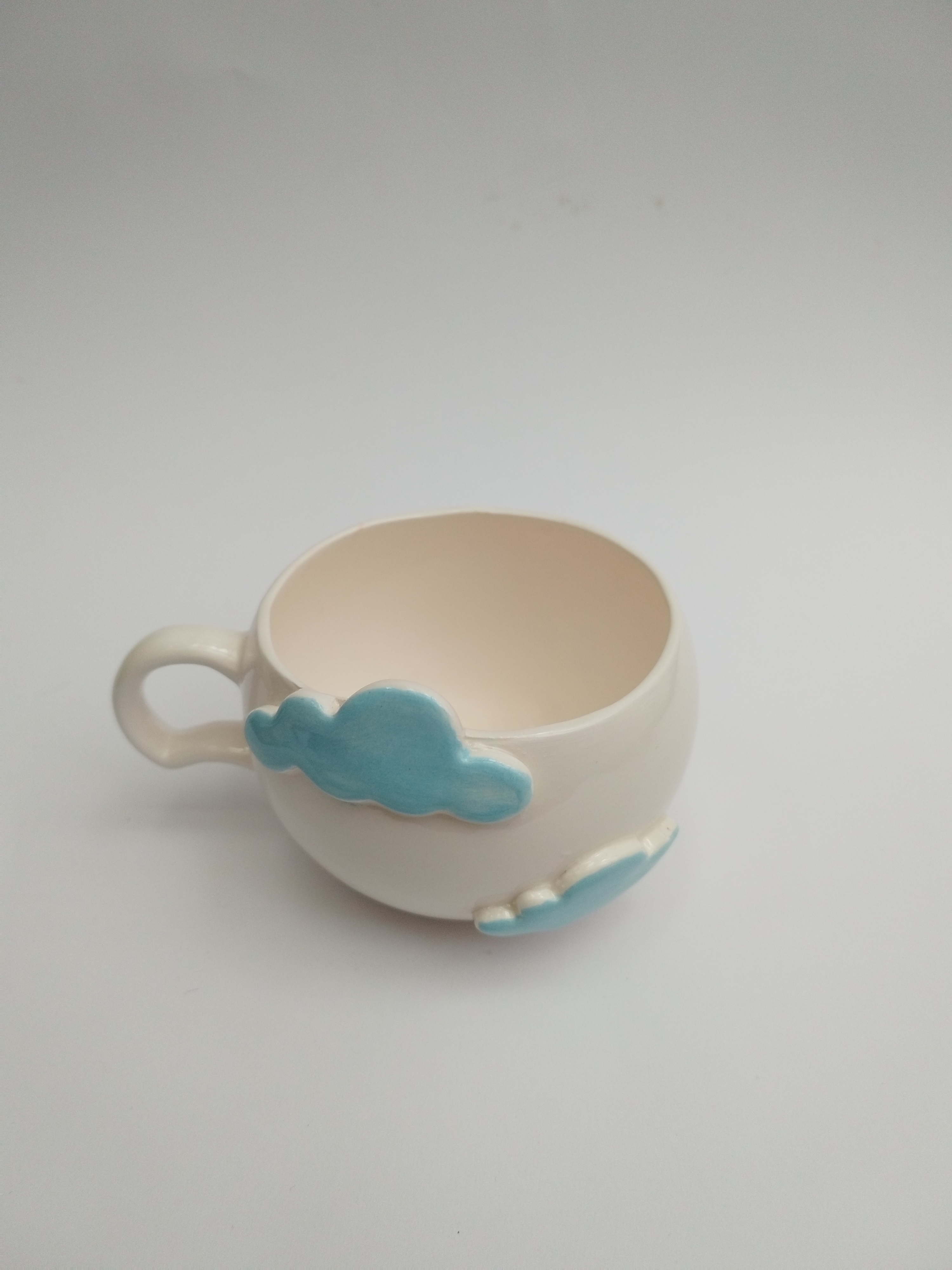 فنجان سرامیکی الهامگرفته از آسمان و ابر، با ابرهای آبی برجسته که روی بدنه کار شدهاند، حس آرامش و خیالانگیزی را به میز شما میآورد. این فنجان دستساز انتخابی عالی برای کسانی است که به جزئیات لطیف و طراحیهای فانتزی علاقه دارند.