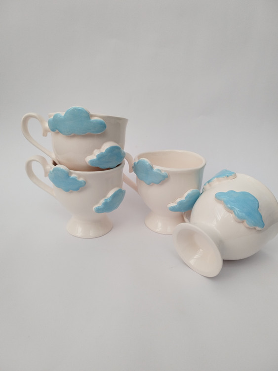فنجان سرامیکی دستساز طرح ابر از مجموعهی فطرس سرامیک ، با طراحی لطیف و رنگهای آرامشبخش ساخته شده تا لحظهی نوشیدن قهوه یا چای، حس خیال و آرامش آسمان آبی را برایتان زنده کند. ابرهای برجسته و لعاب آبی براق روی زمینهی سفید روشن، جلوهای شاعرانه و خاص به این فنجان دادهاند. تمام مراحل ساخت، از فرمدهی تا لعابکاری، با دست انجام شده و هر فنجان منحصربهفرد است.
