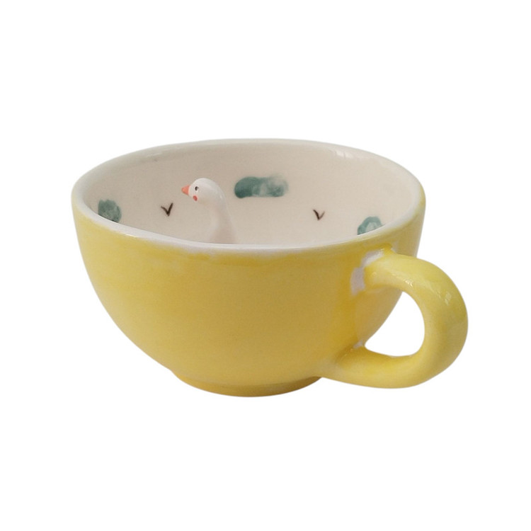 ماگ سرامیکی سوپرایزی طرح غاز رنگ زرد