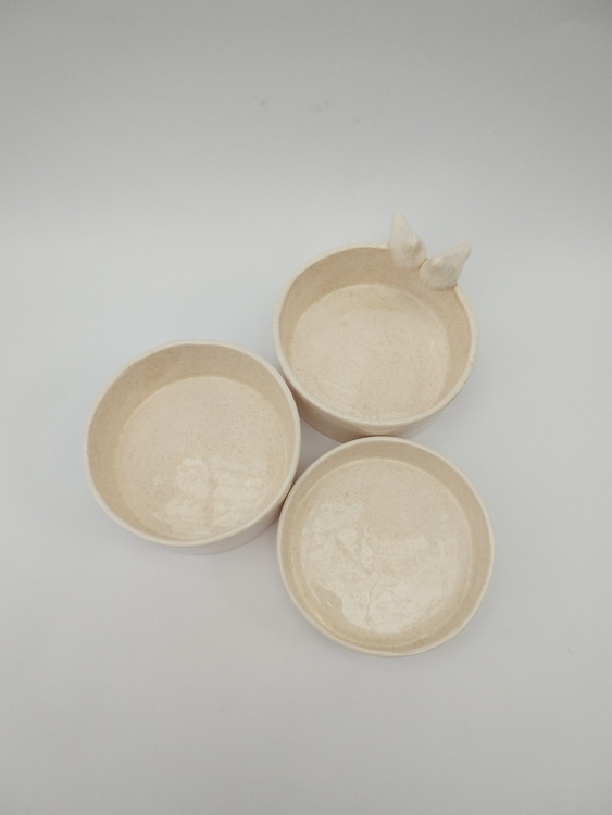 این ست شامل 3 عدد ظرف با قطر 10 سانتی متر با ارتفاع های متقاوت که لبه یکی از ظروف دو عدد پرنده می باشد.