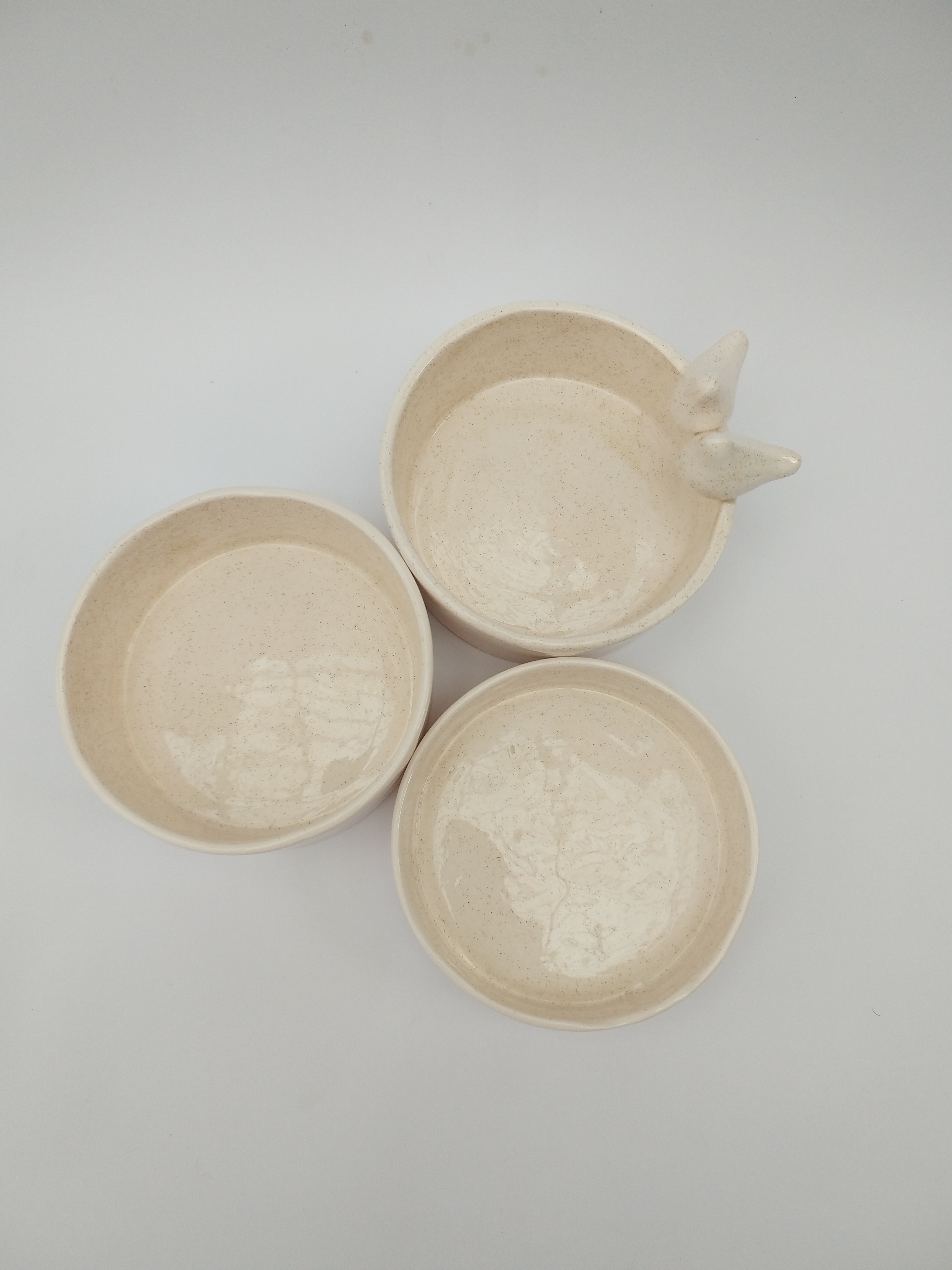 این ست شامل 3 عدد ظرف با قطر 10 سانتی متر با ارتفاع های متقاوت که لبه یکی از ظروف دو عدد پرنده می باشد.