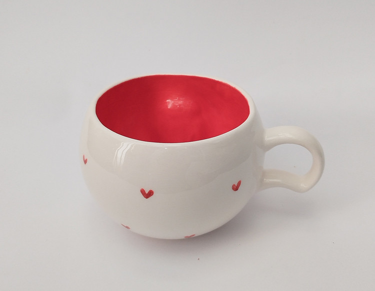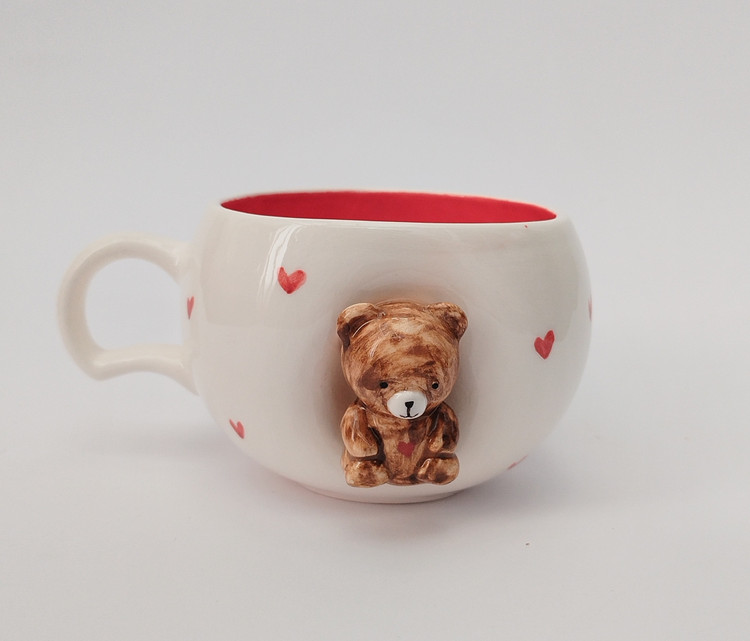 این ماگ زیبا با رنگ قرمز داخل و قلب های بیرون ماگ و یک خرس کوچک روی ماگ، حس شادی و لطافت را القا میکند.