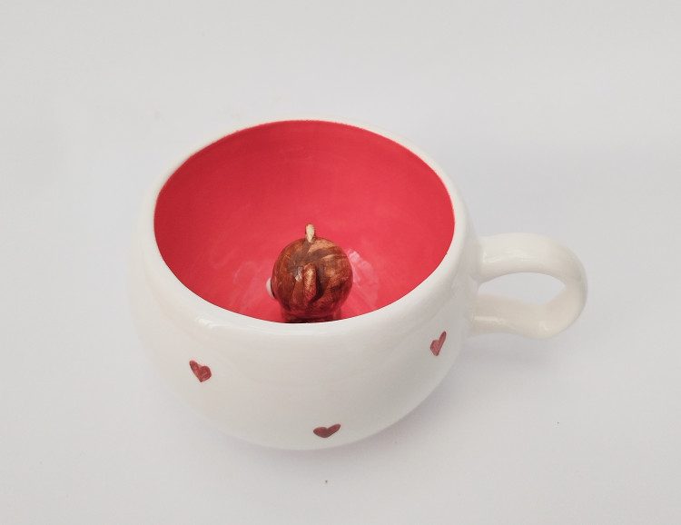 این ماگ زیبا با رنگ قرمز داخل و قلب های بیرون ماگ و یک خرس کوچک داخل ماگ، حس شادی و لطافت را القا میکند.