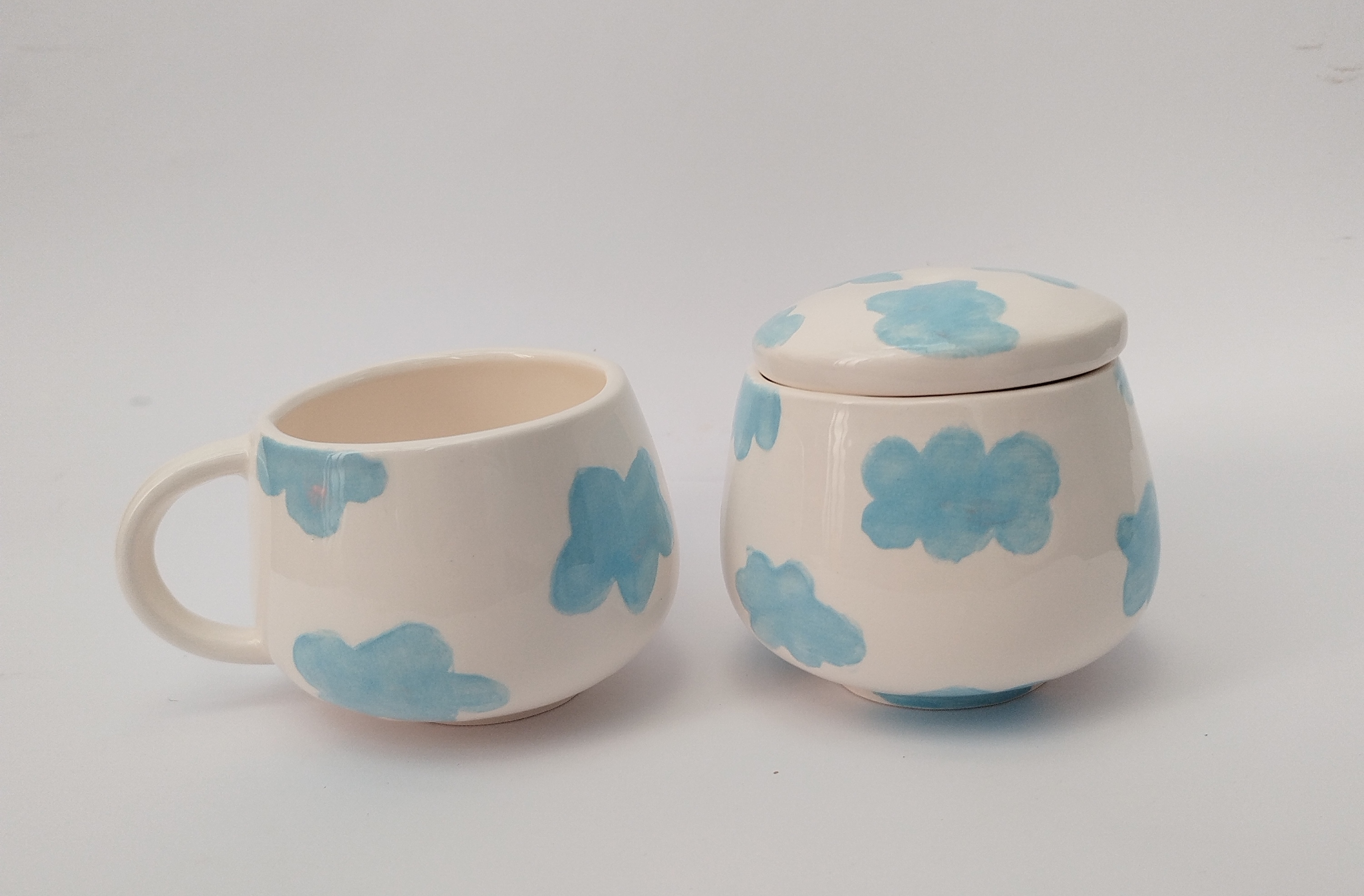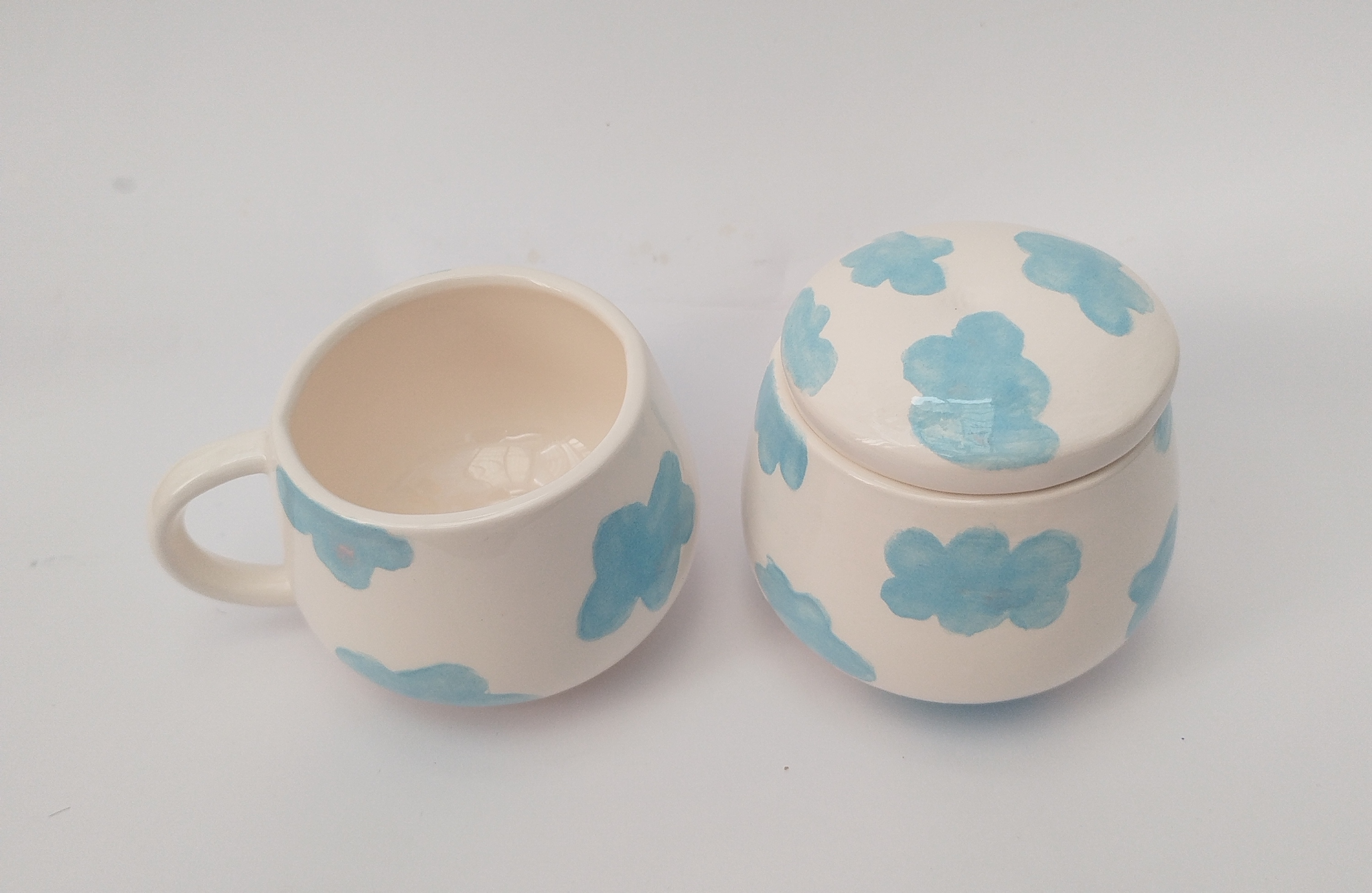 ست فنجان و قندان سرامیکی طرح ابری ☁️💙