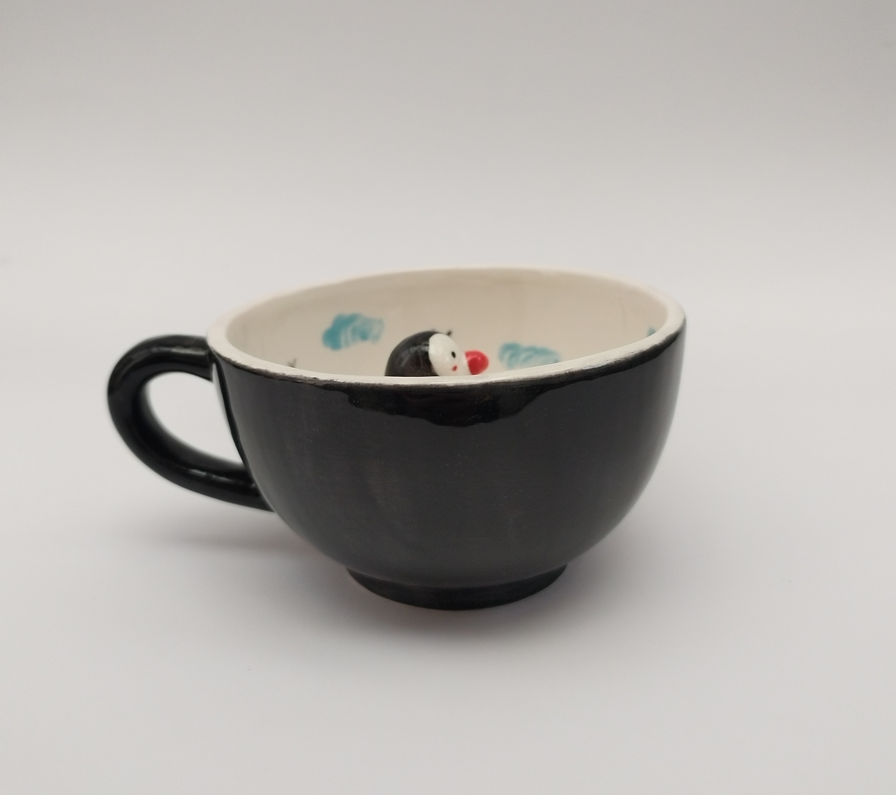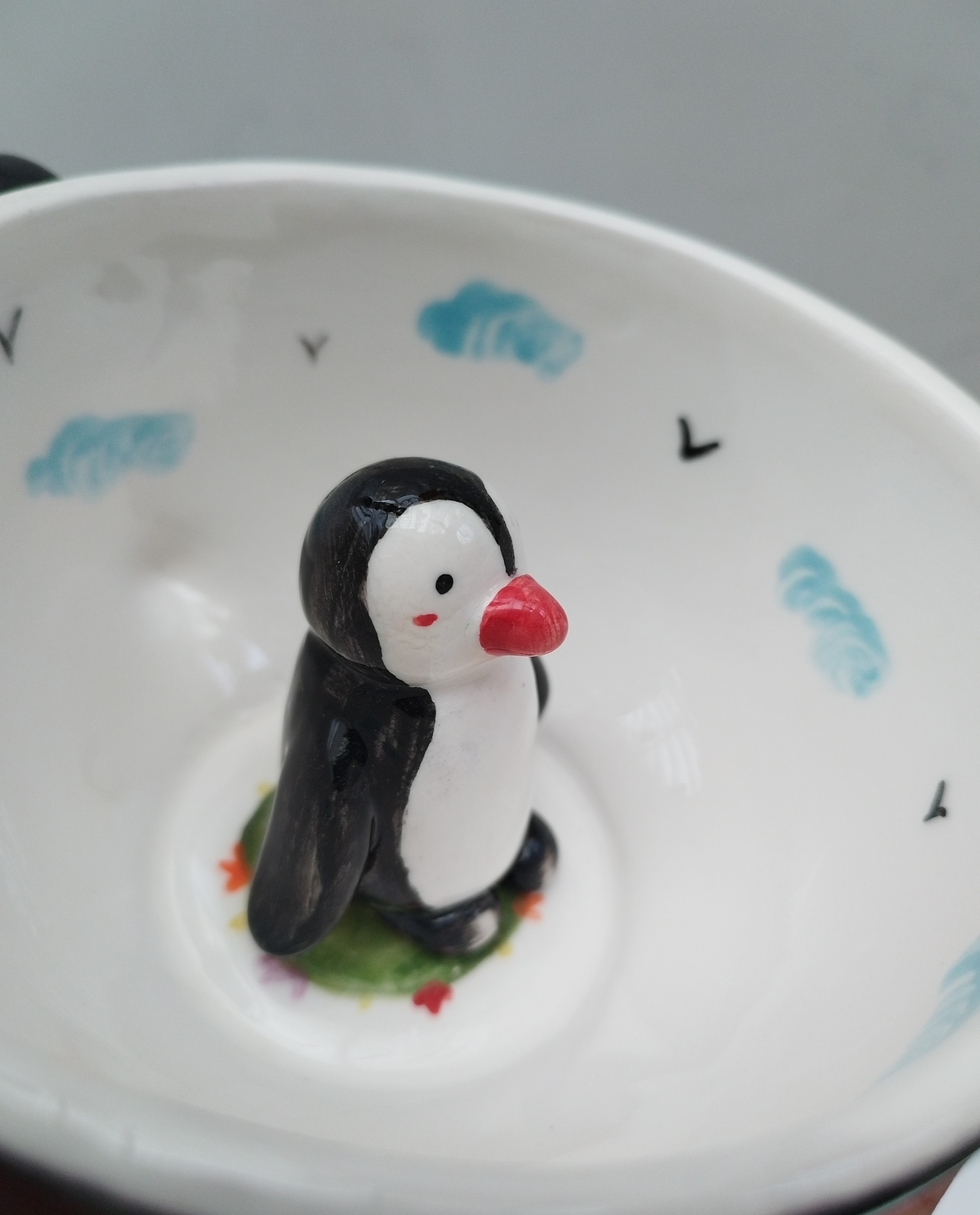 ماگ سرامیکی با فیگور پنگوئن دست ساز، خرید ماگ فانتزی، ماگ با عروسک سرامیکی، ماگ خاص برای هدیه، فروشگاه فطرس سرامیک
