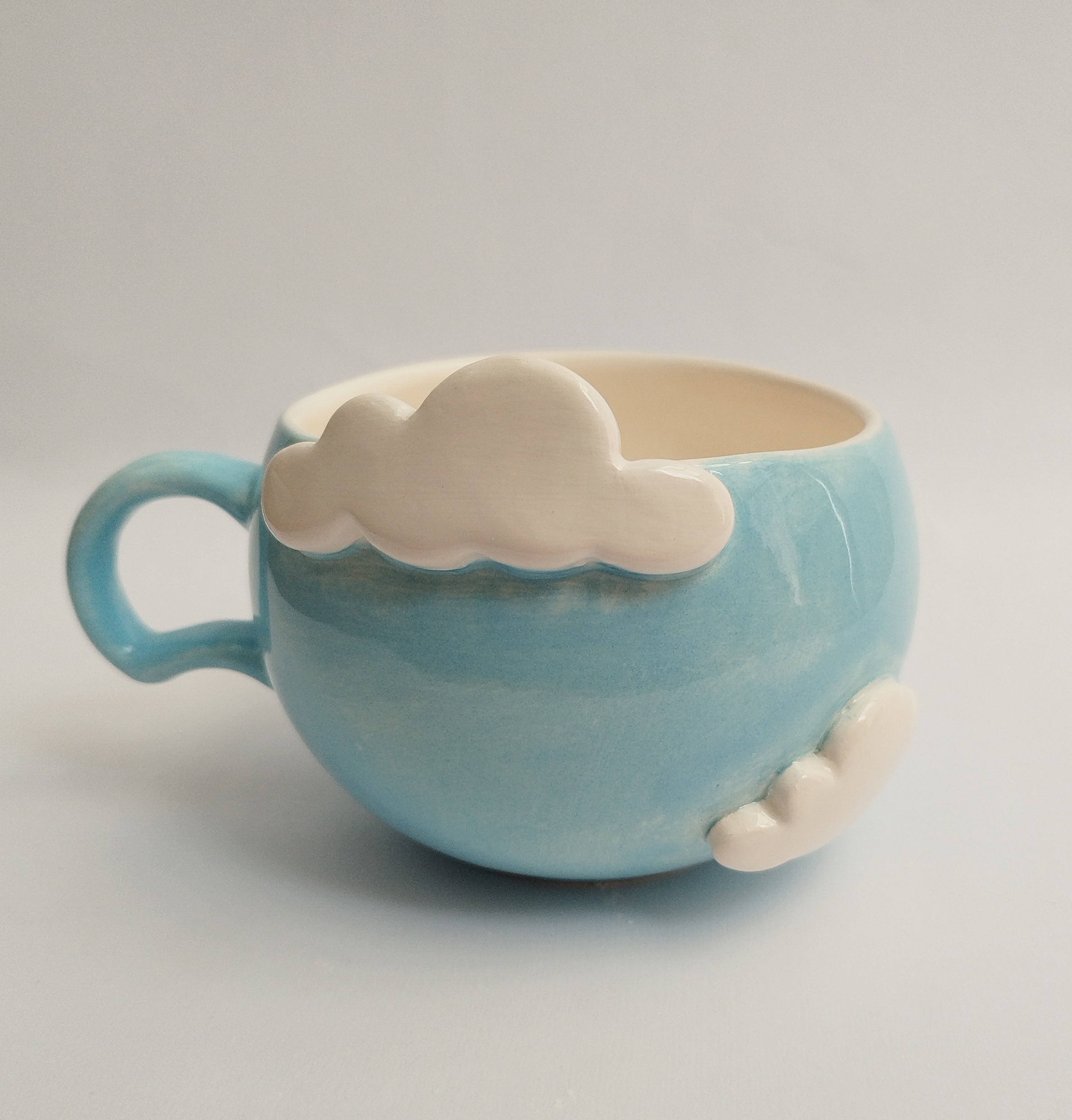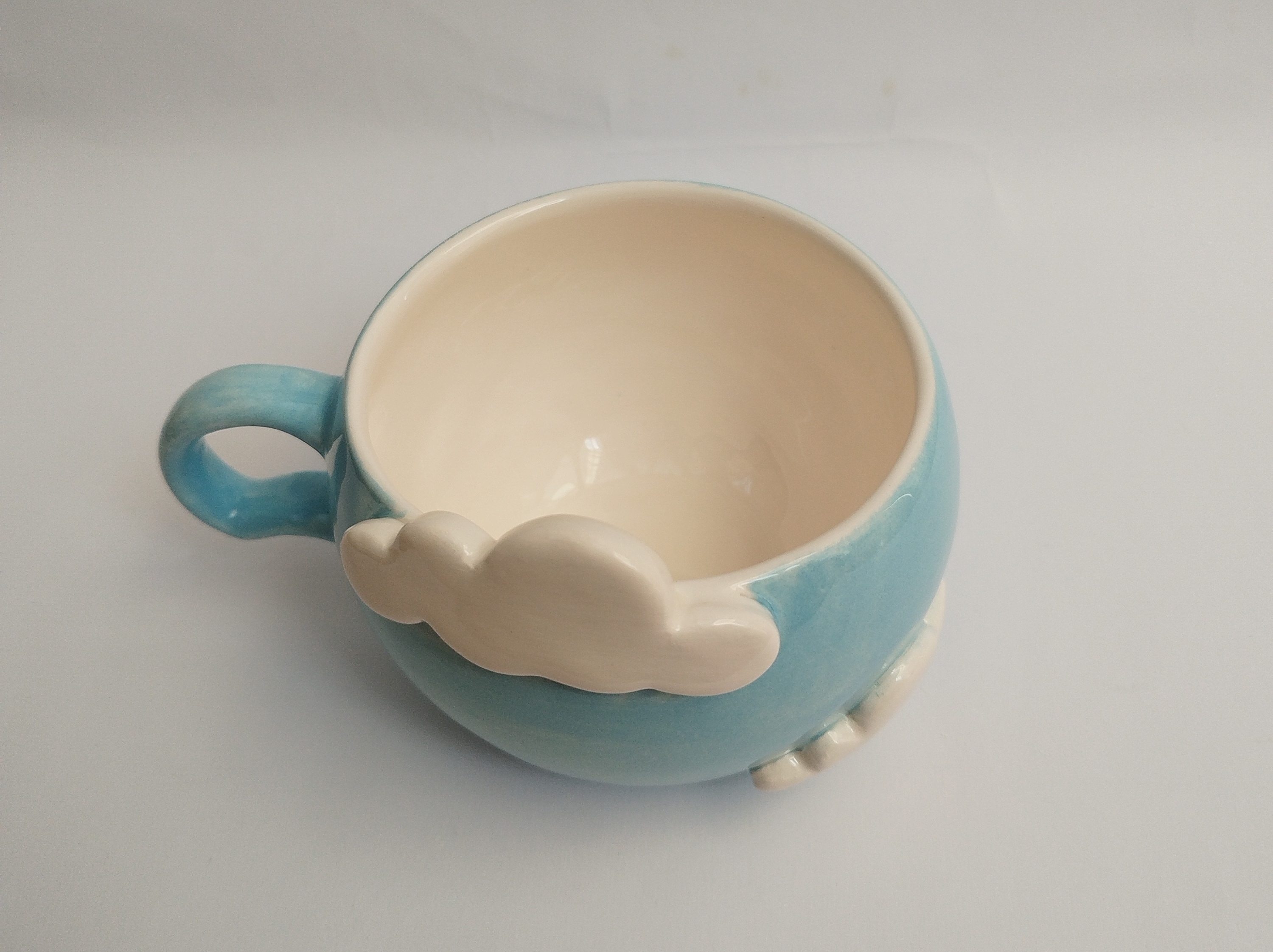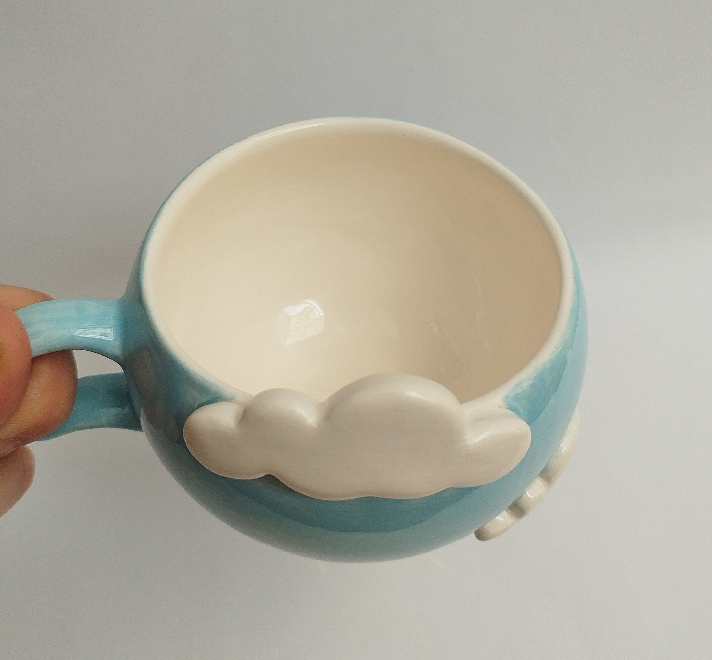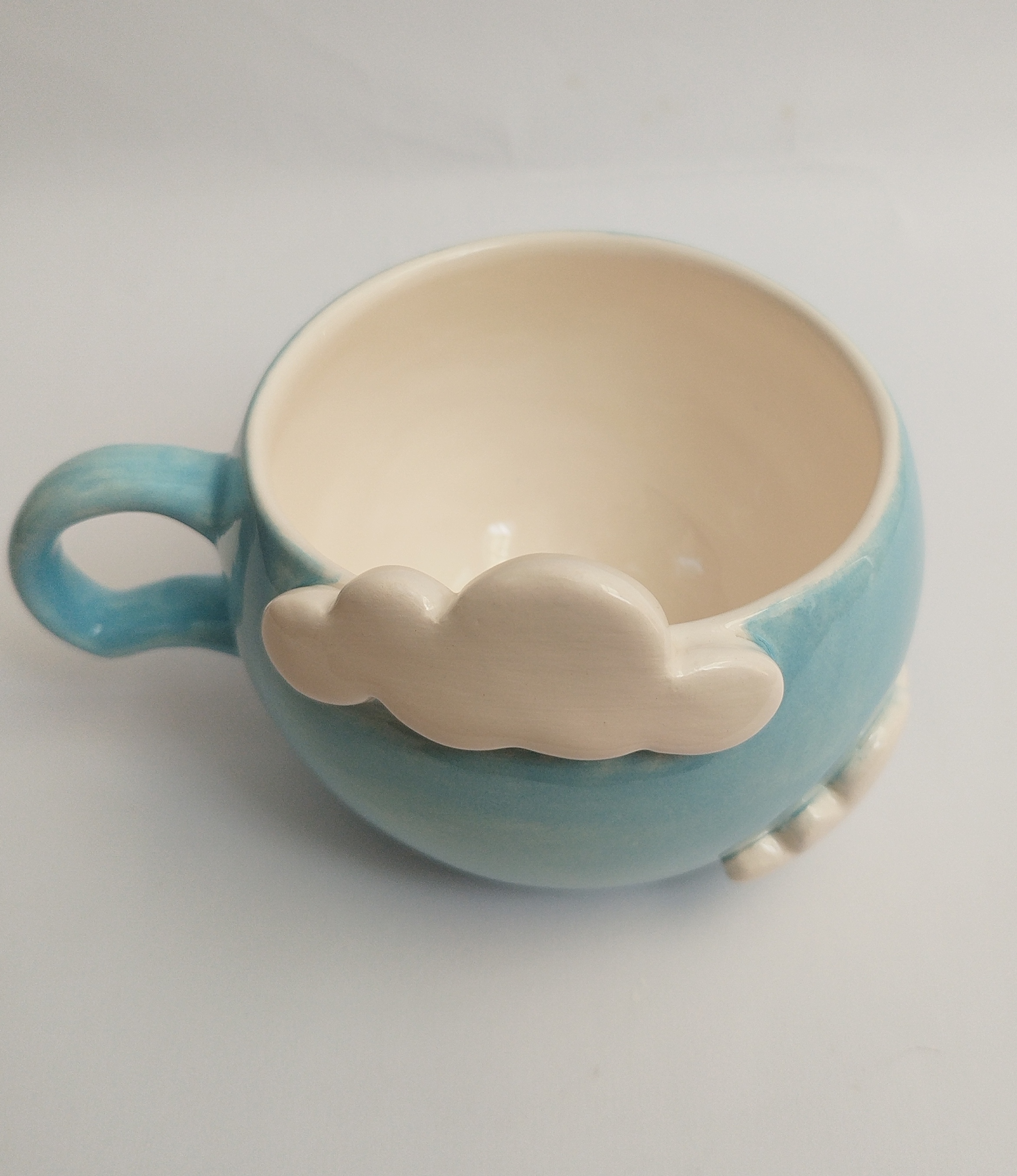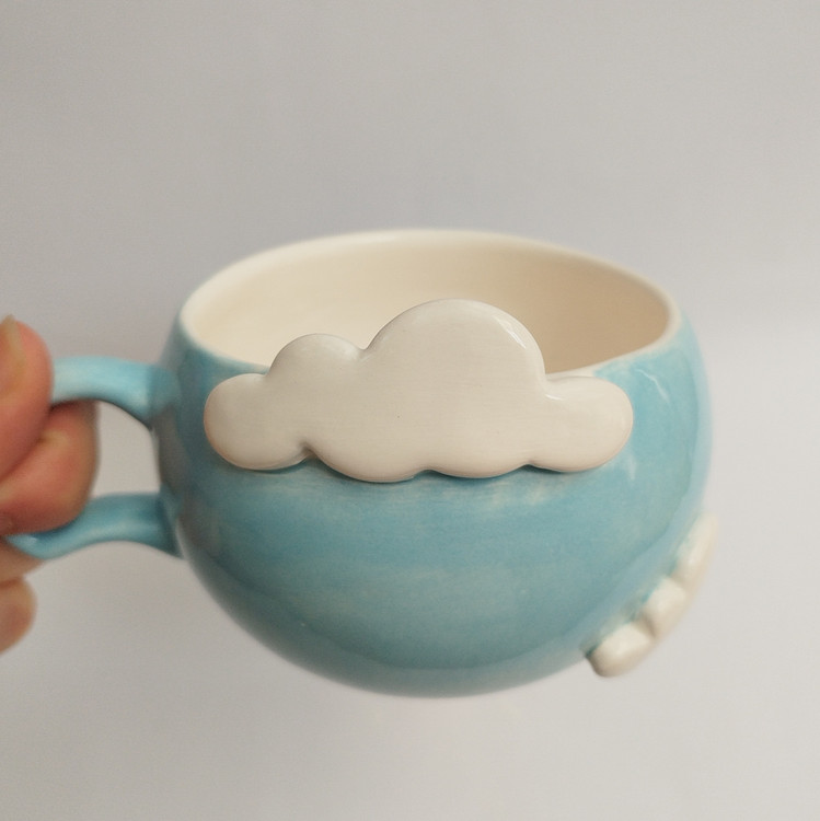 فنجان سرامیکی الهامگرفته از آسمان و ابر، با ابرهای سفید برجسته که روی بدنه کار شدهاند، حس آرامش و خیالانگیزی را به میز شما میآورد. این فنجان دستساز انتخابی عالی برای کسانی است که به جزئیات لطیف و طراحیهای فانتزی علاقه دارند.