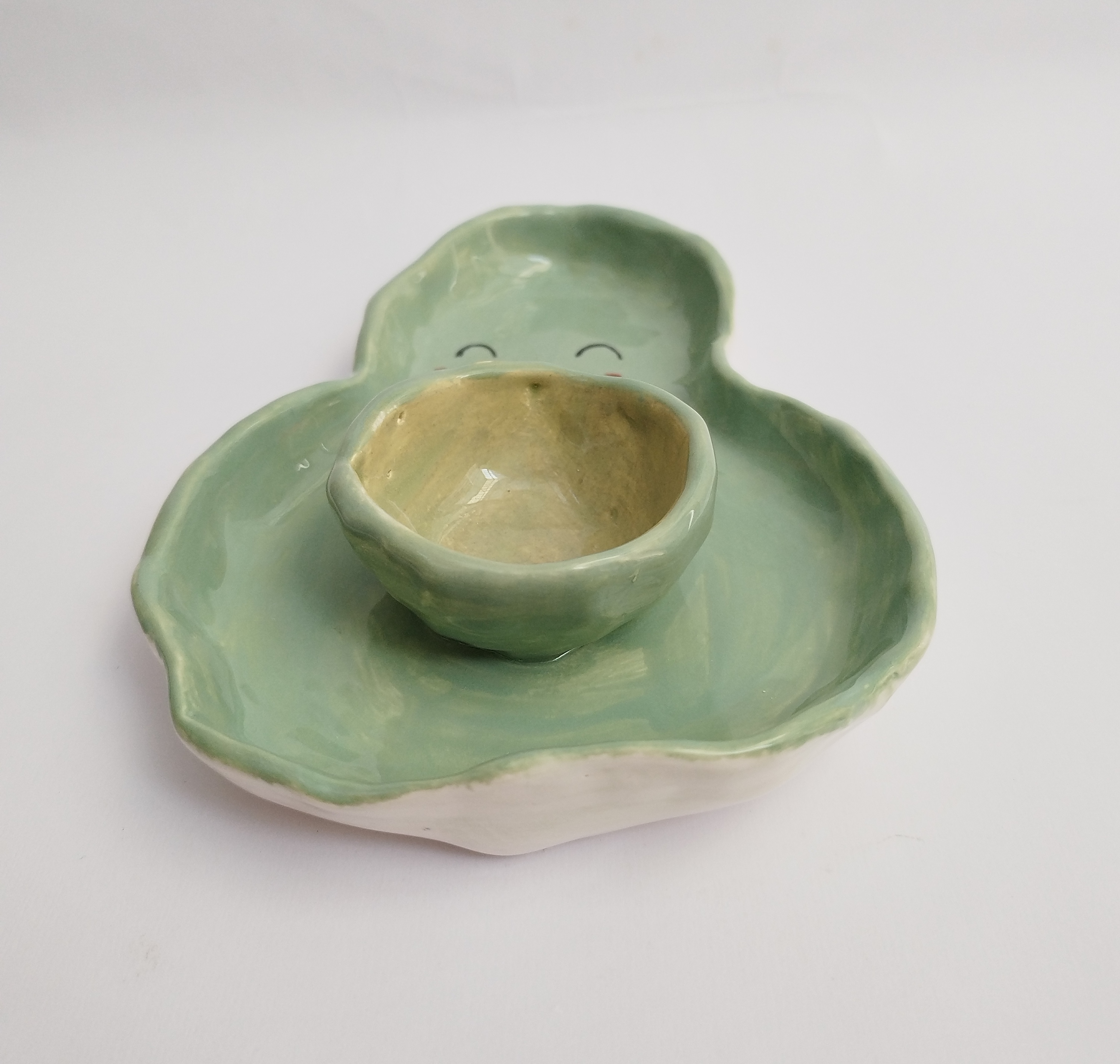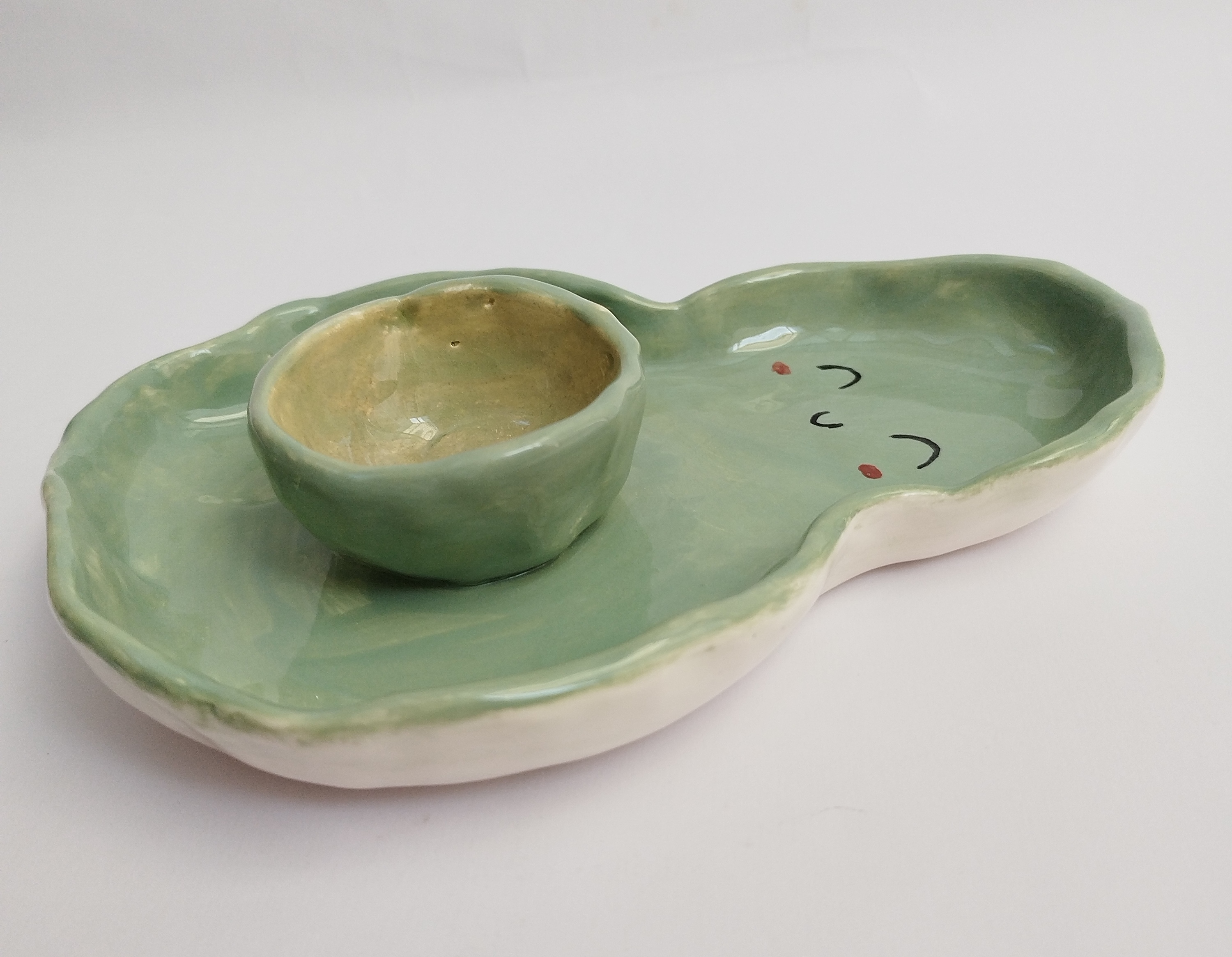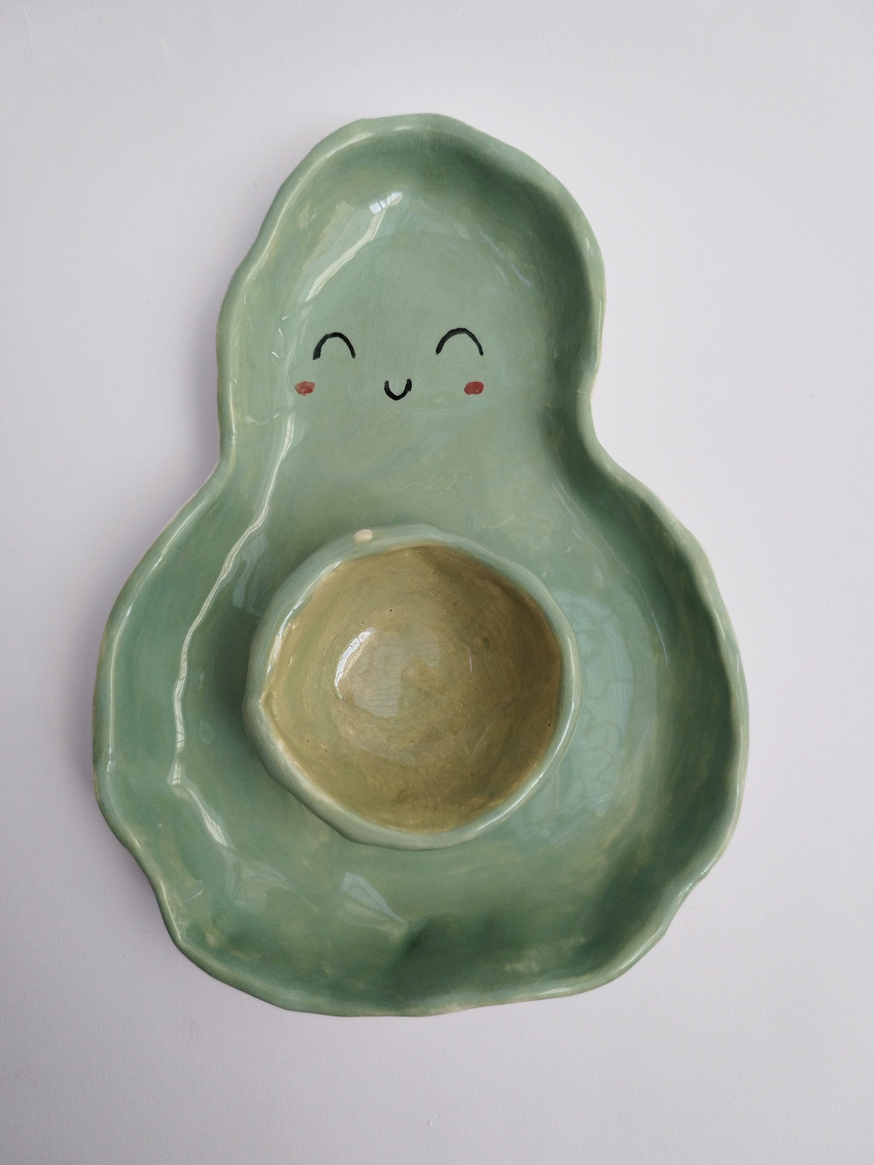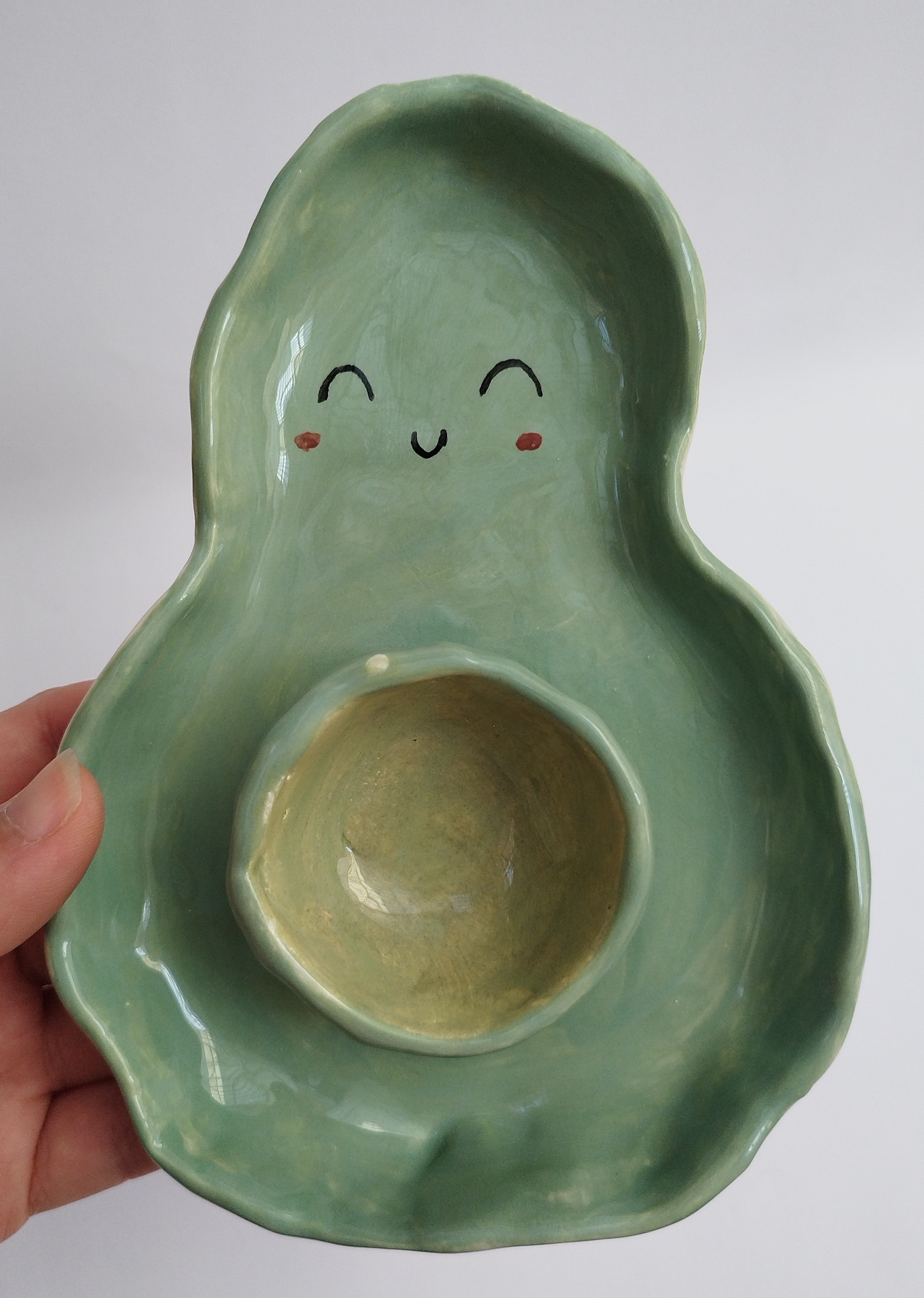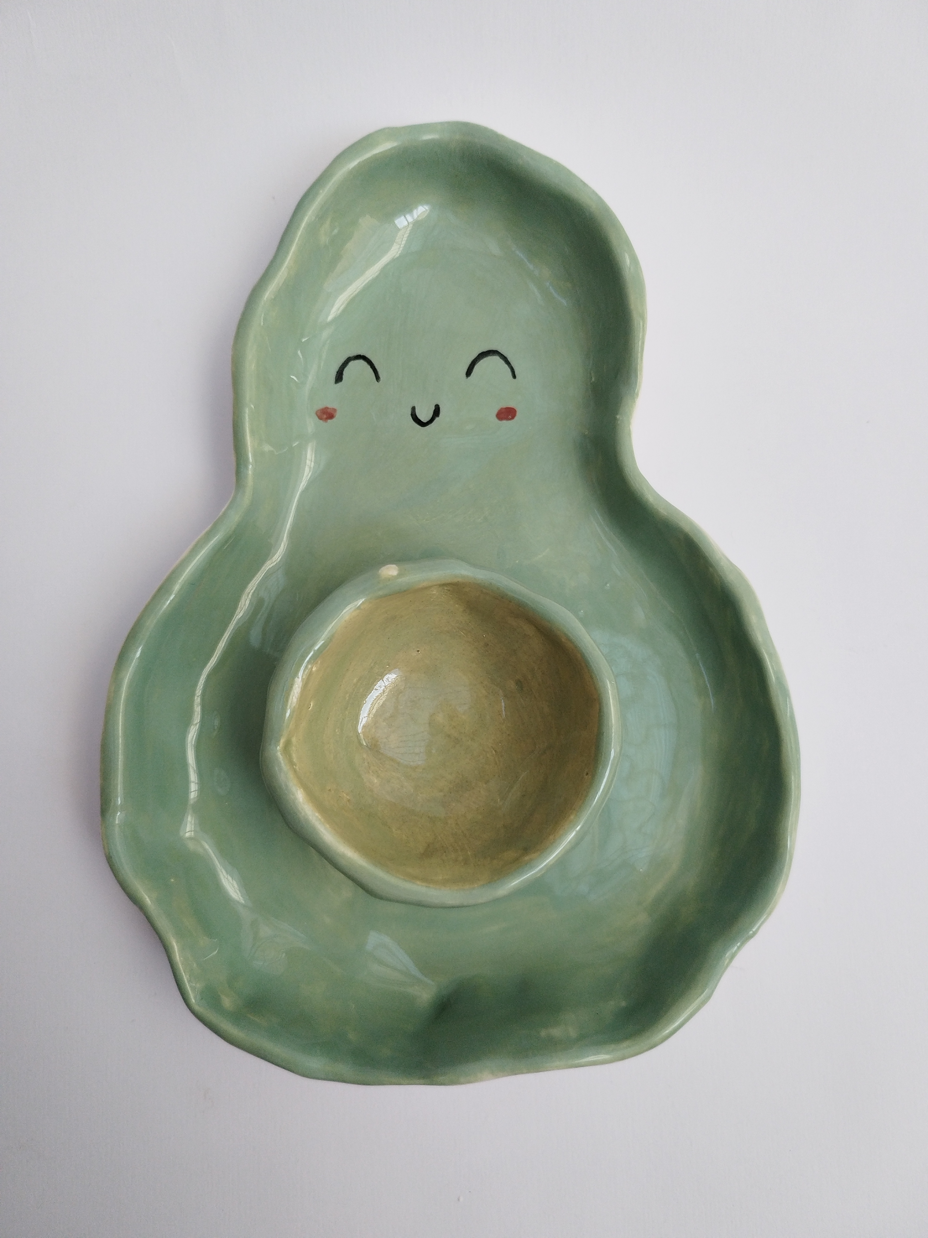 ظرف مزه خوری سرامیکی کاملا دست ساز، و دفرمه مدل آووکادو، مناسب برای سرو انواع تنقلات، خشکبار، تخمه، چیپس و ماست، زیتون و..... میباشد.