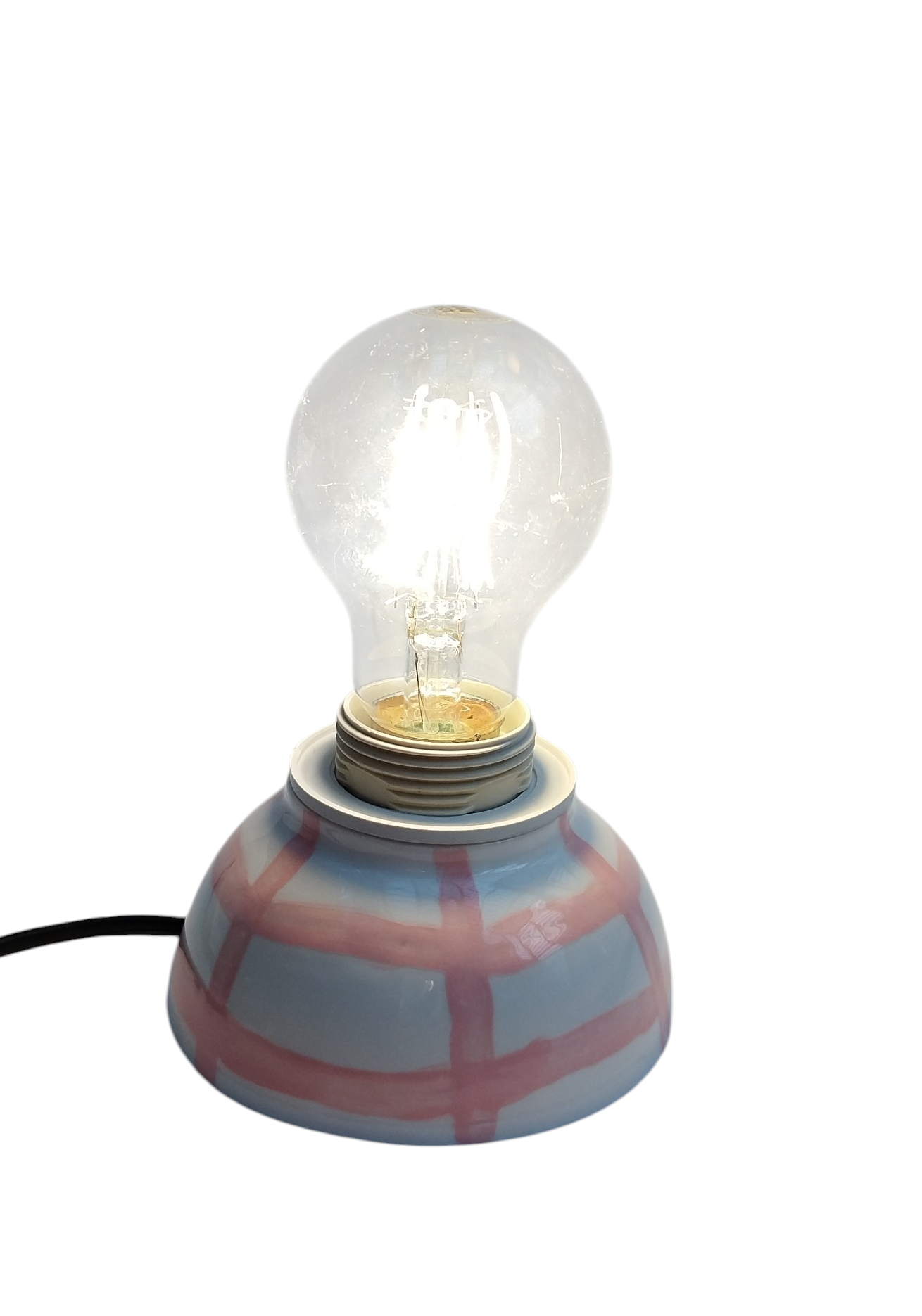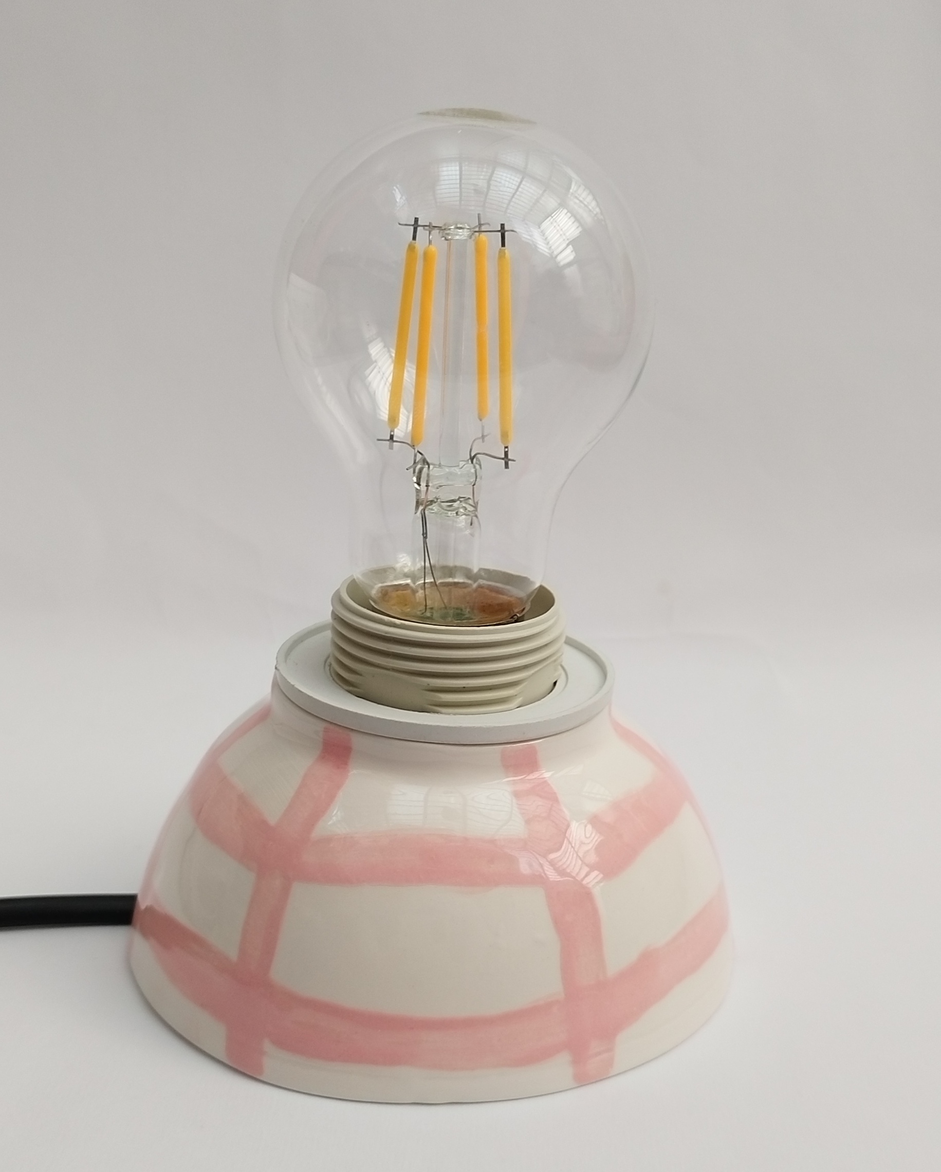این آباژور سرامیکی دست ساز شامل؛ پایه ی آباژور سرامیکی، لامپ LED فلامنتی گرد زرد رنگ (در صورت انتخاب) ، سرپیچ لامپ گریفت دار سفید، کابل کلید دار مشکی یا سفید به طول 180 سانتی متر میباشد.