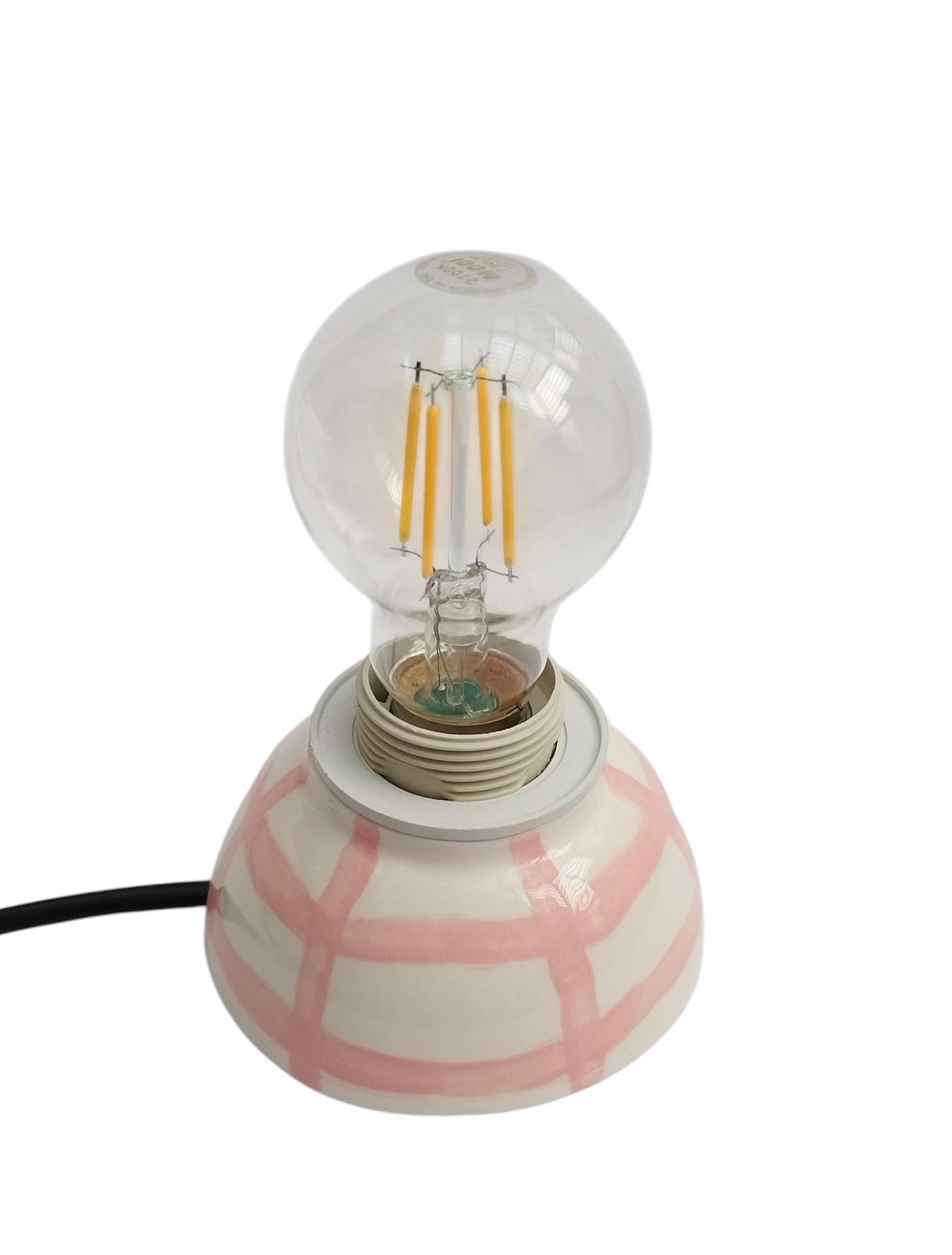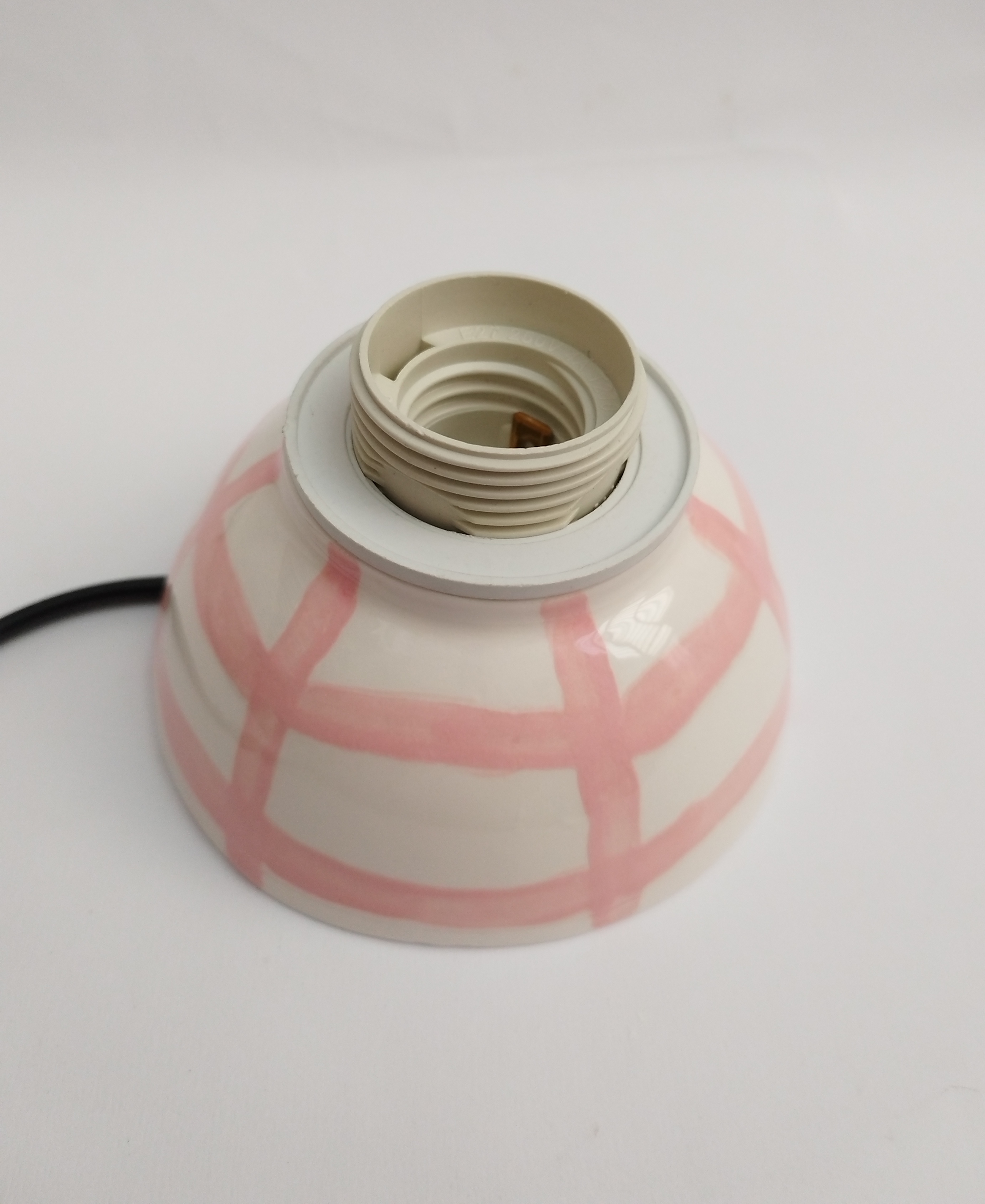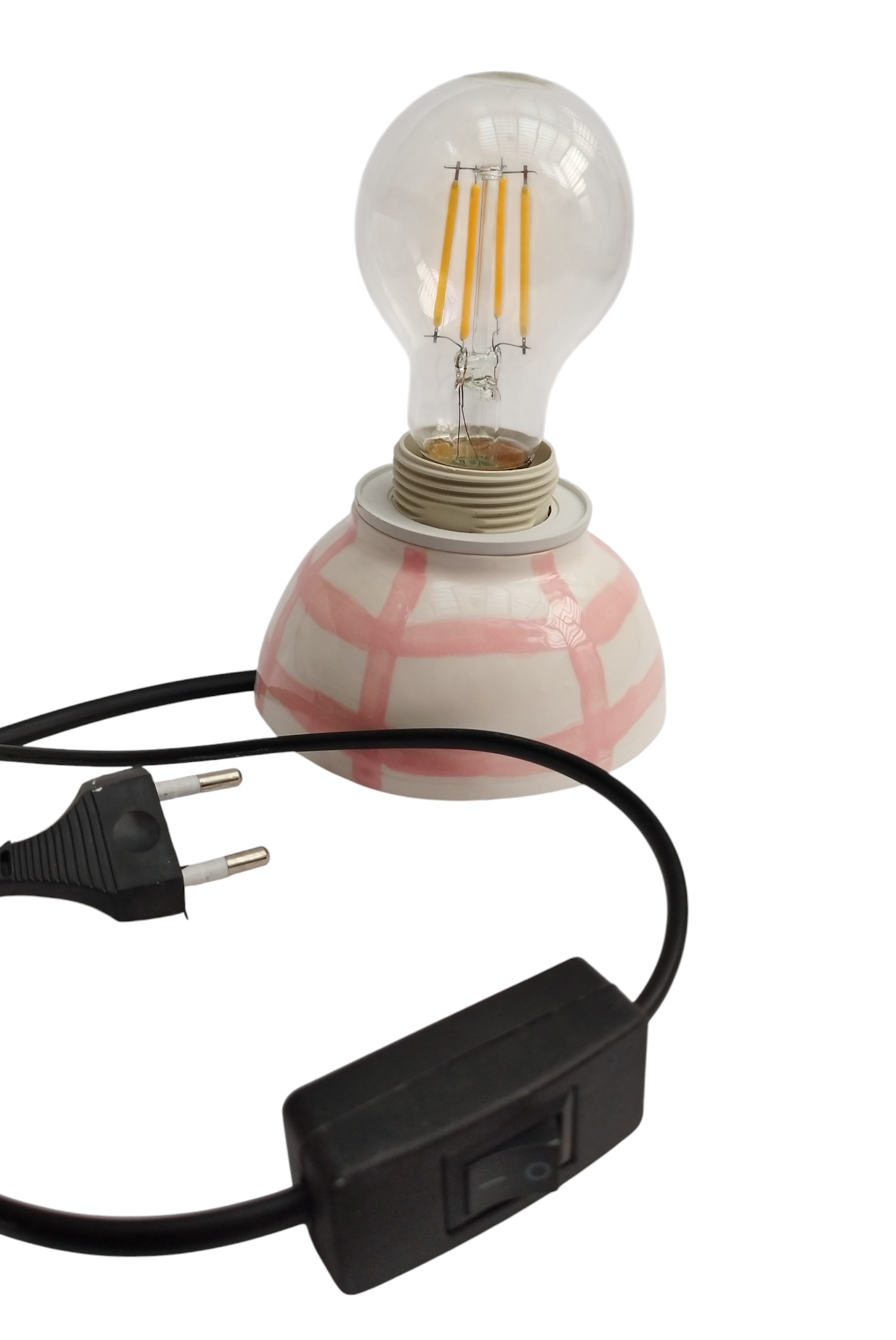 آباژور سرامیکی دستساز با طراحی خطوط صورتی، مناسب برای اتاق خواب، میز مطالعه و هدیه به عزیزان میباشد. لعاب سفید براق، مناسب برای دکور اتاق خواب یا میز مطالعه. سیمکشی استاندارد و پایهی مقاوم میباشد. نور زرد نرم و شاعرانه با پایهای از هنر دست، این آباژور کوچک از مجموعه ی فطرس سرامیک ساخته شده با دست تا در هر فضا، حس آرامش و خیال را تداعی کند.