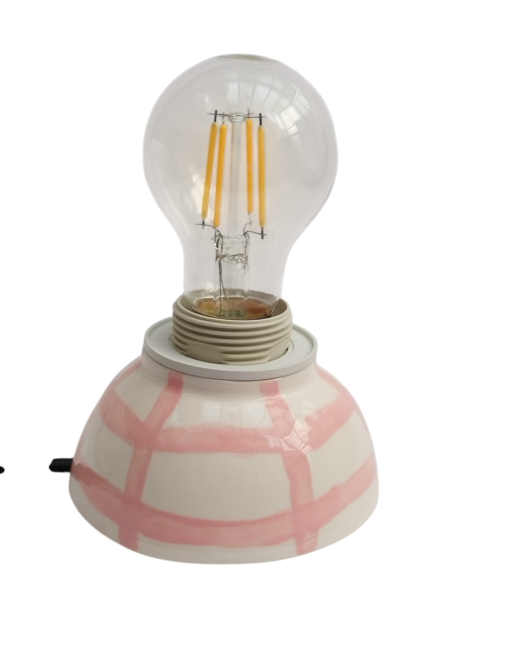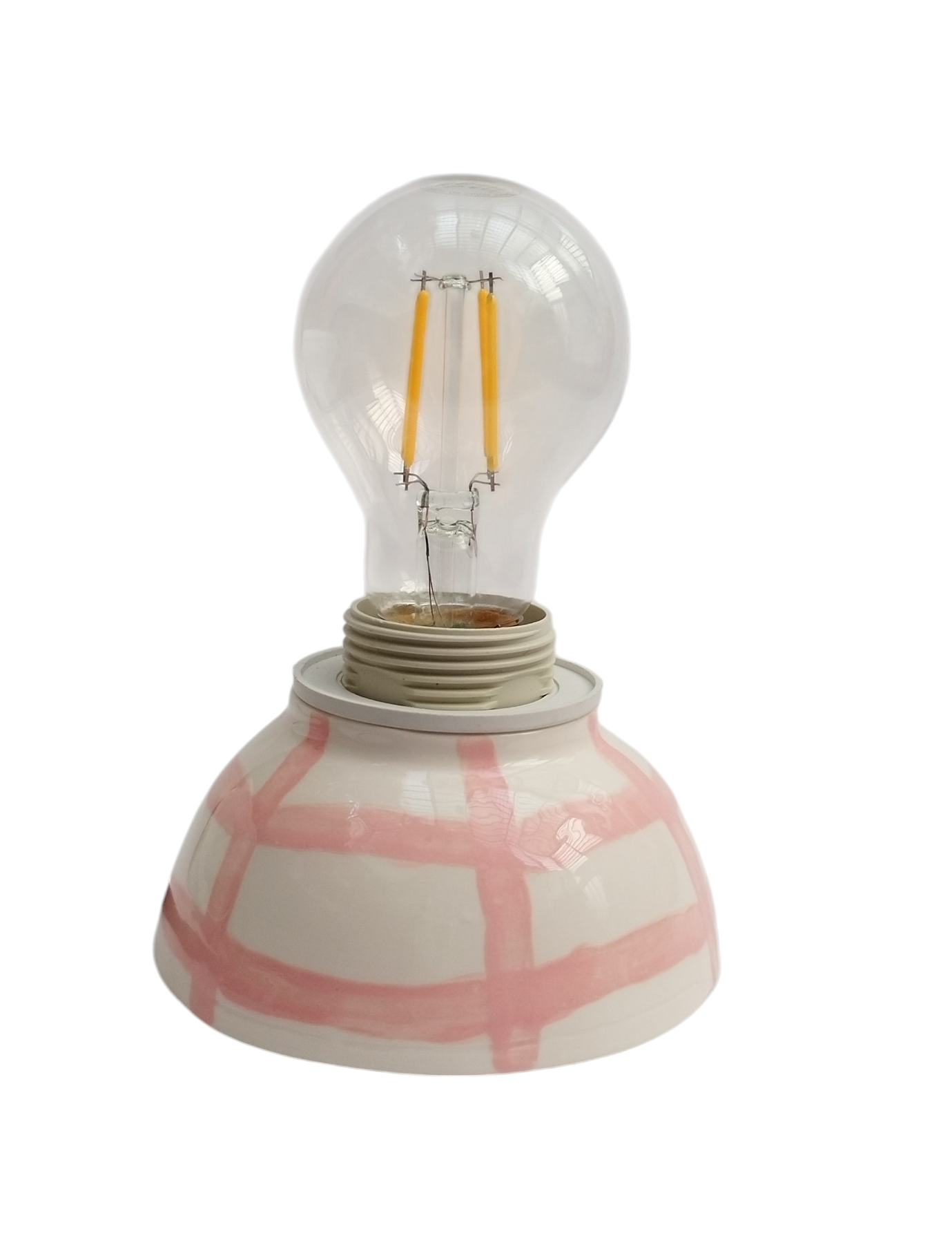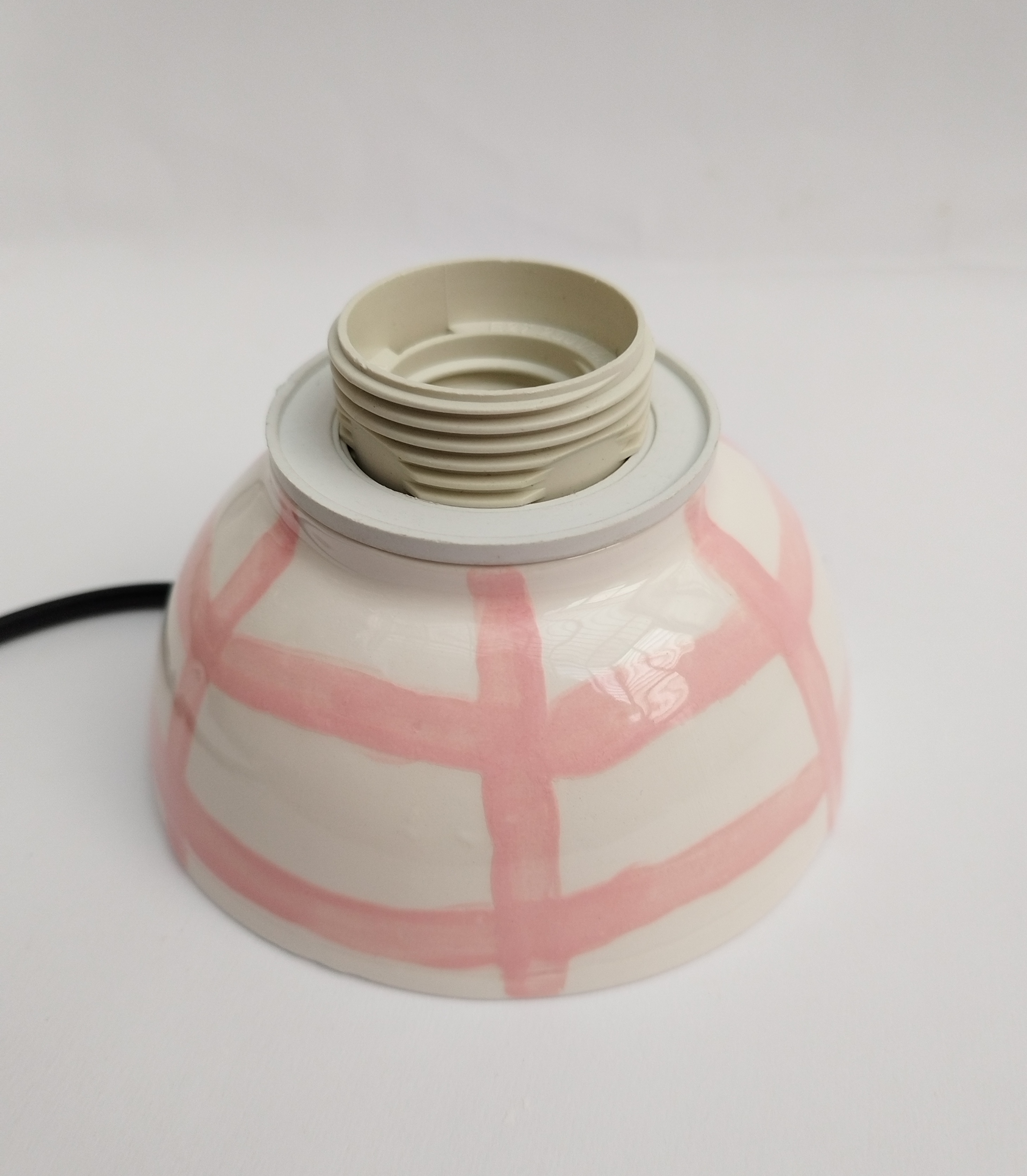 آباژور سرامیکی دستساز با طراحی خطوط صورتی، مناسب برای اتاق خواب، میز مطالعه و هدیه به عزیزان میباشد. لعاب سفید براق، مناسب برای دکور اتاق خواب یا میز مطالعه. سیمکشی استاندارد و پایهی مقاوم میباشد. نور زرد نرم و شاعرانه با پایهای از هنر دست، این آباژور کوچک از مجموعه ی فطرس سرامیک ساخته شده با دست تا در هر فضا، حس آرامش و خیال را تداعی کند.