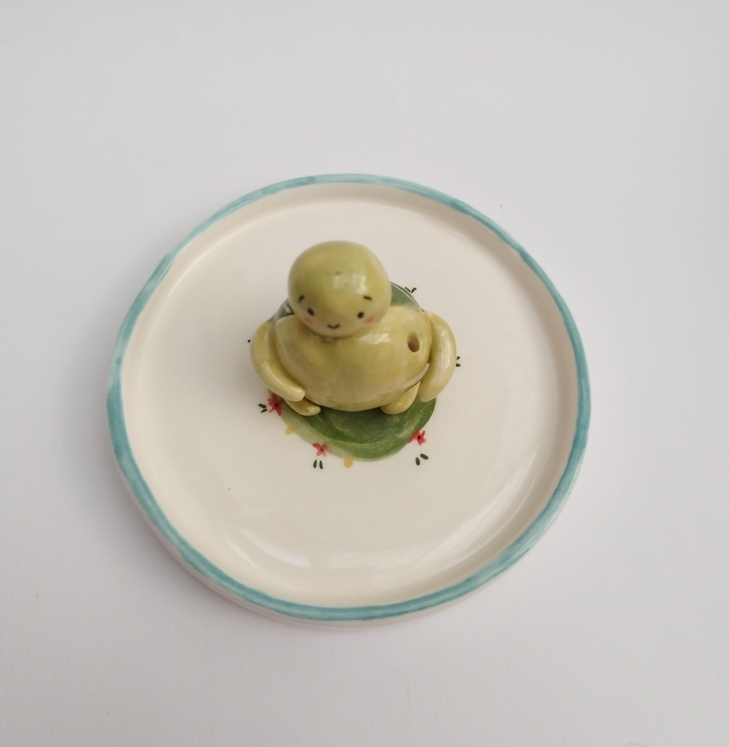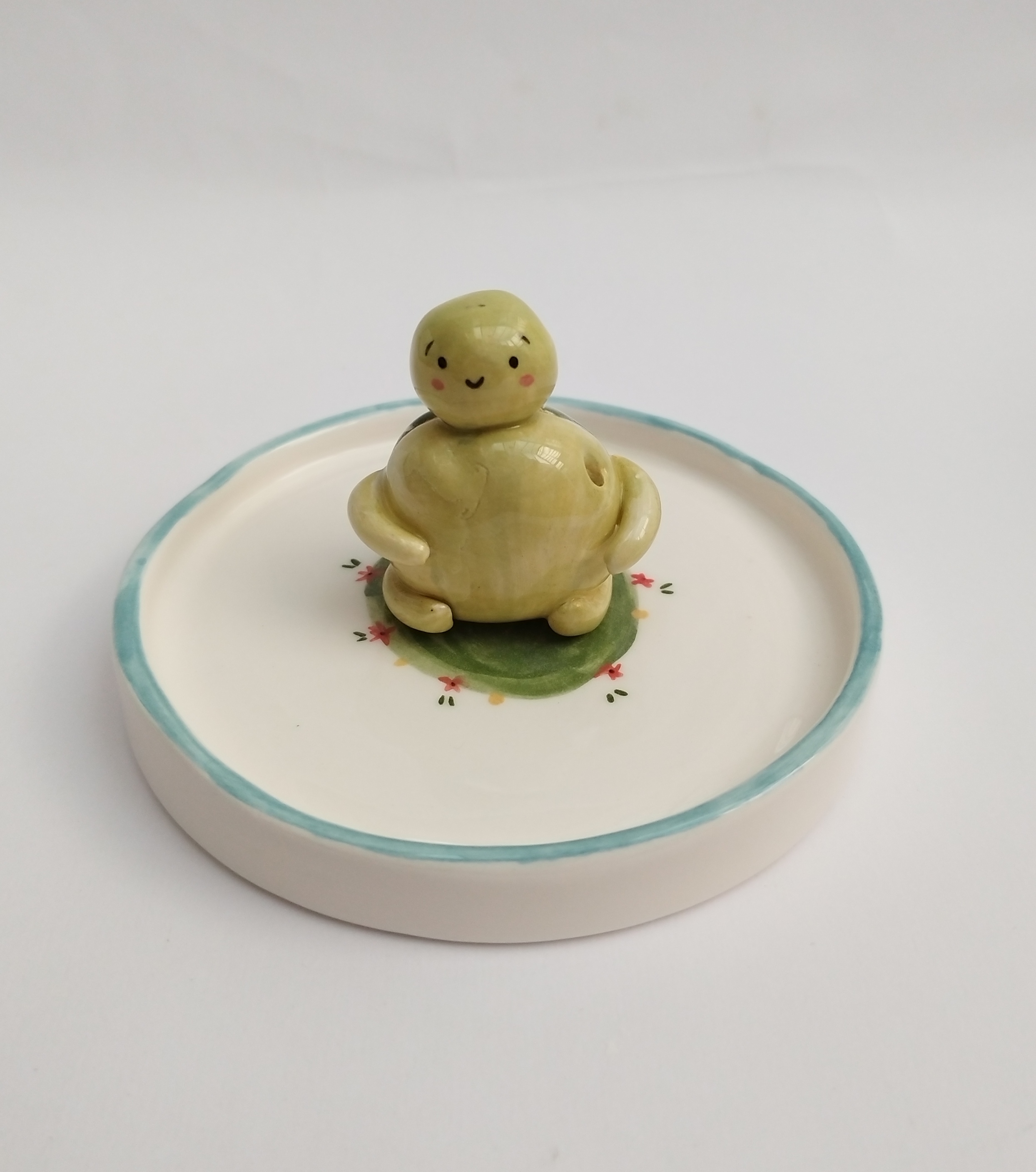 عودسوز سرامیکی دستساز مدل لاک پشت از برند فطرس سرامیک ، ترکیبی از ظرافت و سادگی است که آرامش و زیبایی را به فضای خانه یا محل کار شما میآورد. این اثر هنری با دست ساخته شده و دارای طراحی فانتزی و دلنشین لاک پشت است که بر روی ظرفی با لعاب براق و طرح گلهای کوچک قرار گرفته. علاوه بر کارایی برای سوزاندن عود، میتواند بهعنوان یک شیء دکوری خاص نیز زینتبخش میز، شلف یا میز کار شما باشد. هر قطعه از آثار فطرس سرامیک بهصورت کاملاً دستساز تولید میشود و ممکن است تفاوتهای جزئی در رنگ یا فرم داشته باشد که به منحصربهفرد بودن آن میافزاید.
