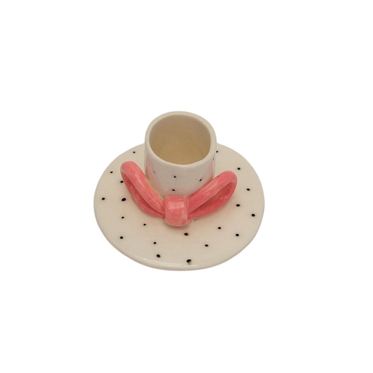 جاشمعی سرامیکی دستساز با طرح پاپیون، طراحی ظریف و فانتزی دارد. مناسب برای دکور اتاق خواب، میز کار یا هدیه دادن میباشد. دارای لعاب شفاف و مقاوم در برابر حرارت شمع است. پاپیون این جاشمعی، یادآور لطافت و ظرافت است. ترکیب فرم فانتزی و رنگ ملایم آن، فضایی دلانگیز و آرام به هر گوشه از خانهات میبخشد. هر قطعه با عشق و دقت دستساز ساخته شده تا حس خاصبودن را منتقل کند.