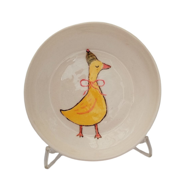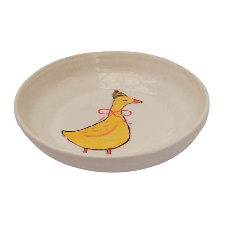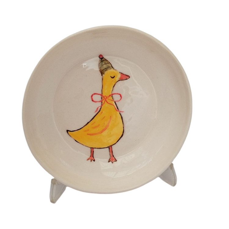 این اثر یک بشقاب سرامیکی دستساز با نقاشی کار دست طرح اردک میباشد. ساختهشده از متریال باکیفیت و پوشیده با لعاب شفاف براق میباشد. مناسب برای استفاده روزمره، سرو میوه یا دسر، و همچنین به عنوان دیوارکوب یا جاجواهری دکوراتیو میتواند استفاده شود. مقاوم در برابر حرارت و قابل شستوشو با دست یا ماشین ظرفشویی است. هر خط و رنگ در این بشقاب با دست نقاشی شده است تا حس لطافت و کودکانهی درون را زنده کند. طرح اردک، با رنگهای گرم و شاد، یادآور سادگی و سرزندگیست، قطعهای کوچک اما پر از روح ساخته ی دست هنرمندان فطرس سرامیک میباشد.