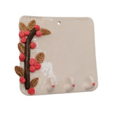 این جاکلیدی دیواری سرامیکی، یک اثر دستساز هنری است که با طراحی ظریف شاخه و گلهای برجسته، جلوهای خاص و متفاوت به فضای منزل شما میبخشد. ترکیب رنگهای گرم (قرمز و قهوهای) در کنار زمینه سفید براق، آن را به گزینهای ایدهآل برای دکوراسیون مینیمال و کلاسیک تبدیل کرده است. این محصول دارای سه عدد قلاب سرامیکی مقاوم با نقوش قلب کوچک است که علاوهبر کارایی برای آویزان کردن کلید، زیبایی بصری هم ایجاد میکند. سوراخ تعبیهشده در قسمت بالای کار نصب آن را روی دیوار بسیار آسان کرده است. این جاکلیدی علاوه بر کاربرد روزمره، میتواند هدیهای خاص و ماندگار برای عزیزانتان باشد.