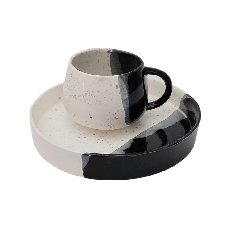 این ست فنجان و بشقاب سرامیکی دستساز، ترکیبی از سادگی مدرن و هنر اصیل سرامیک میباشد. لعاب زیبا با تضاد چشمنواز رنگهای مشکی و سفید جلوهای خاص و مینیمال به این مجموعه داده و هر قطعه بهدلیل ساخت دستی، ظاهری منحصربهفرد و غیرقابل تکرار دارد. این ست گزینهای عالی برای سرو قهوه، اسپرسو، چای یا دسرهای تکنفره است و علاوهبر کاربرد روزمره، میتواند بهعنوان اکسسوری دکوراتیو یا هدیهای خاص نیز استفاده شود. مناسب کافه یا هدیه دادن به عزیزانتان میباشد. ساختهشده بهصورت کاملاً دستساز، لعابکاری و پخت در دمای بالای ۱۰۰۰ درجه جهت استحکام کار، مقاوم در برابر حرارت و قابل شستوشو با دست یا ماشین ظرفشویی میباشد. طراحی خاص، مدرن و متفاوت این اثر به زیبایی آن می افزاید. با انتخاب این ست سرامیکی، نهتنها یک محصول کاربردی بلکه تکهای از هنر دست را به فضای خود اضافه میکنید.
