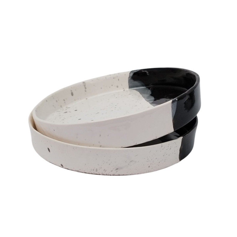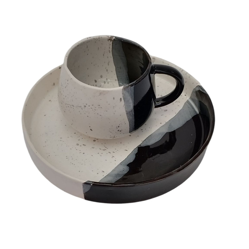 این ست فنجان و بشقاب سرامیکی دستساز، ترکیبی از سادگی مدرن و هنر اصیل سرامیک میباشد. لعاب زیبا با تضاد چشمنواز رنگهای مشکی و سفید جلوهای خاص و مینیمال به این مجموعه داده و هر قطعه بهدلیل ساخت دستی، ظاهری منحصربهفرد و غیرقابل تکرار دارد. این ست گزینهای عالی برای سرو قهوه، اسپرسو، چای یا دسرهای تکنفره است و علاوهبر کاربرد روزمره، میتواند بهعنوان اکسسوری دکوراتیو یا هدیهای خاص نیز استفاده شود. مناسب کافه یا هدیه دادن به عزیزانتان میباشد. ساختهشده بهصورت کاملاً دستساز، لعابکاری و پخت در دمای بالای ۱۰۰۰ درجه جهت استحکام کار، مقاوم در برابر حرارت و قابل شستوشو با دست یا ماشین ظرفشویی میباشد. طراحی خاص، مدرن و متفاوت این اثر به زیبایی آن می افزاید. با انتخاب این ست سرامیکی، نهتنها یک محصول کاربردی بلکه تکهای از هنر دست را به فضای خود اضافه میکنید.