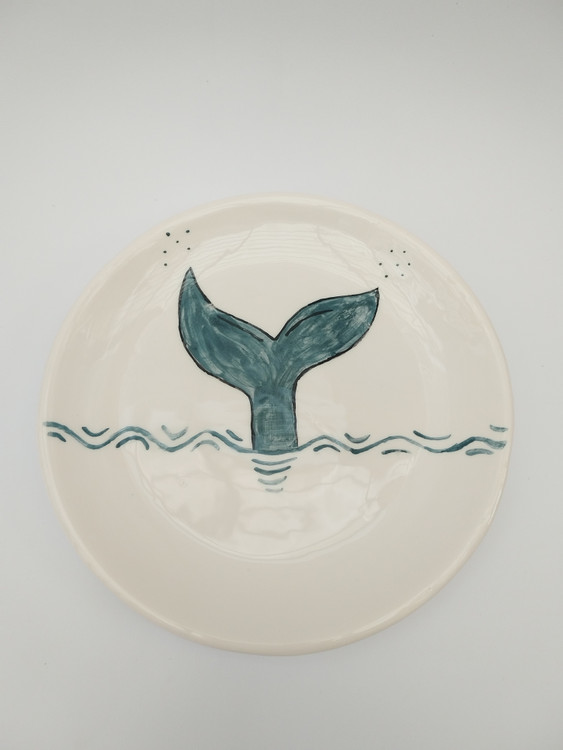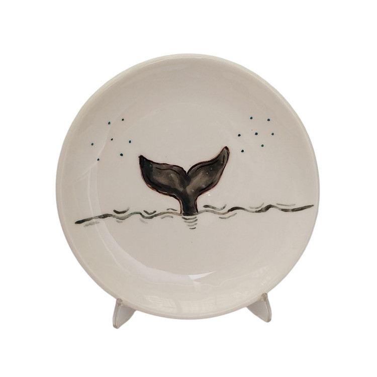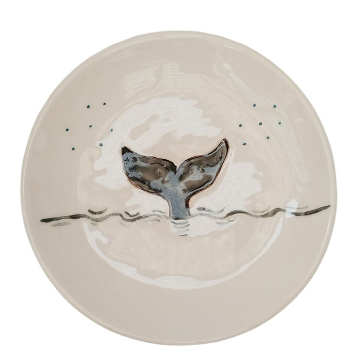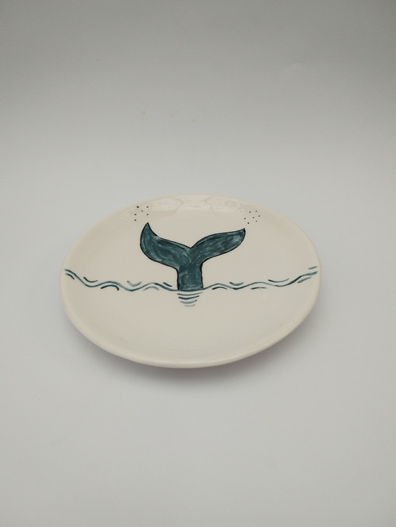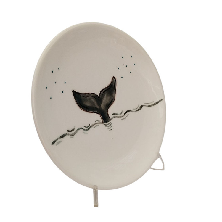 بشقاب سرامیکی دستساز با نقاشی دم نهنگ، لعاب براق و سطح صیقلی، مناسب برای دکور دیواری، سرو خوراکی، میوه، غذا یا دسر میباشد. متریال با کیفیت و لعاب ایمن این ظرف را برای استفادهی روزمره مناسب کرده است. دم نهنگ، نماد رهایی و سفر است. این بشقاب حس حرکت در آب را تداعی میکند — ترکیبی از سادگی و خیال میباشد.