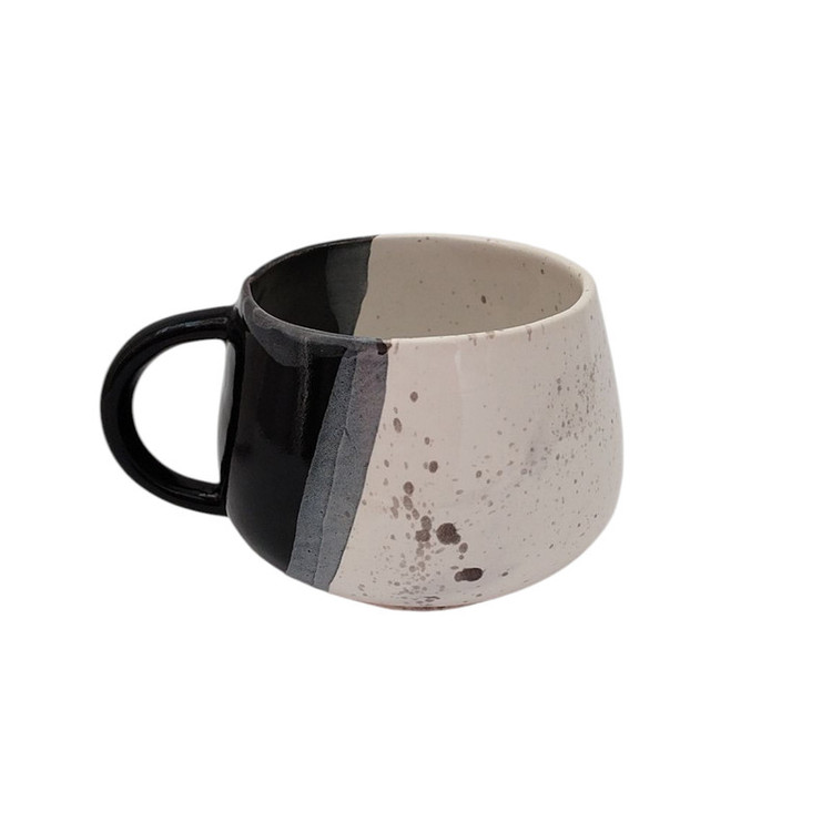 فنجان سرامیکی دستساز مشکی و سفید از مجموعهی فطرس سرامیک ، ترکیبی از سادگی و ظرافت در طراحی است. تضاد رنگهای سیاه و سفید در کنار بافت طبیعی خاک سرامیک، این فنجان را به انتخابی خاص و مینیمال برای علاقهمندان به سبک مدرن تبدیل کرده است. تمام مراحل ساخت و لعابکاری این فنجان با دست انجام شده و به همین دلیل، هر فنجان با دیگری اندکی تفاوت دارد و منحصربهفرد است. مناسب برای قهوه، اسپرسو، چای یا نوشیدنیهای گرم و همچنین استفاده بهعنوان اکسسوری دکوراتیو میباشد.