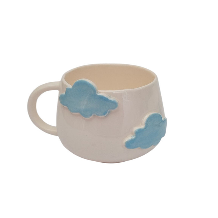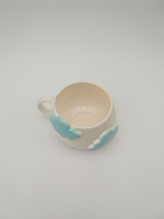 فنجان سرامیکی دستساز طرح ابر از مجموعهی فطرس سرامیک ، با طراحی لطیف و رنگهای آرامشبخش ساخته شده تا لحظهی نوشیدن قهوه یا چای، حس خیال و آرامش آسمان آبی را برایتان زنده کند. ابرهای برجسته و لعاب آبی براق روی زمینهی سفید روشن، جلوهای شاعرانه و خاص به این فنجان دادهاند. تمام مراحل ساخت، از فرمدهی تا لعابکاری، با دست انجام شده و هر فنجان منحصربهفرد است.