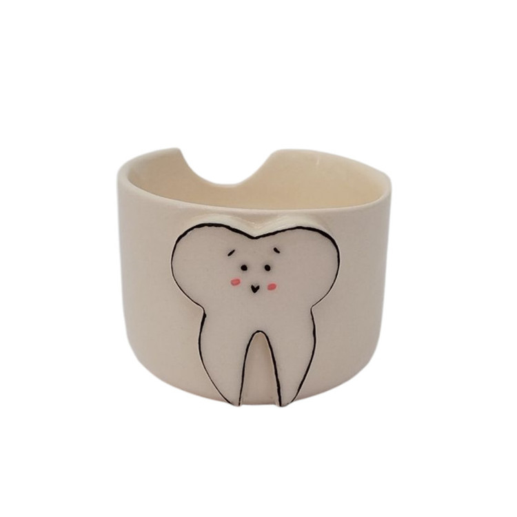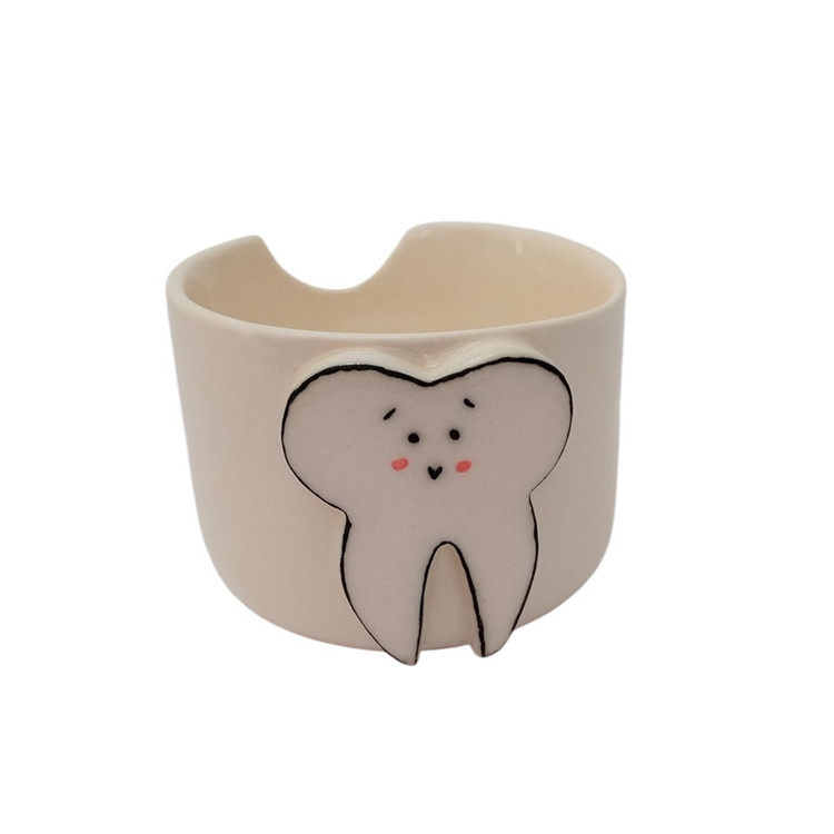 این نیم لیوان سرامیکی دستساز با طراحی منحصربهفرد دندان، هدیهای خاص و کاربردی برای دندانپزشکان، دانشجویان دندانپزشکی و هر کسی است که دنبال وسایل خاص و فانتزی میگردد. لبۀ خاص لیوان علاوه بر زیبایی، حس مدرن و متفاوتی به آن بخشیده است. تمام مراحل ساخت و نقاشی این لیوان با دست انجام شده تا حس اصالت و هنری در هر قطعه حفظ شود.