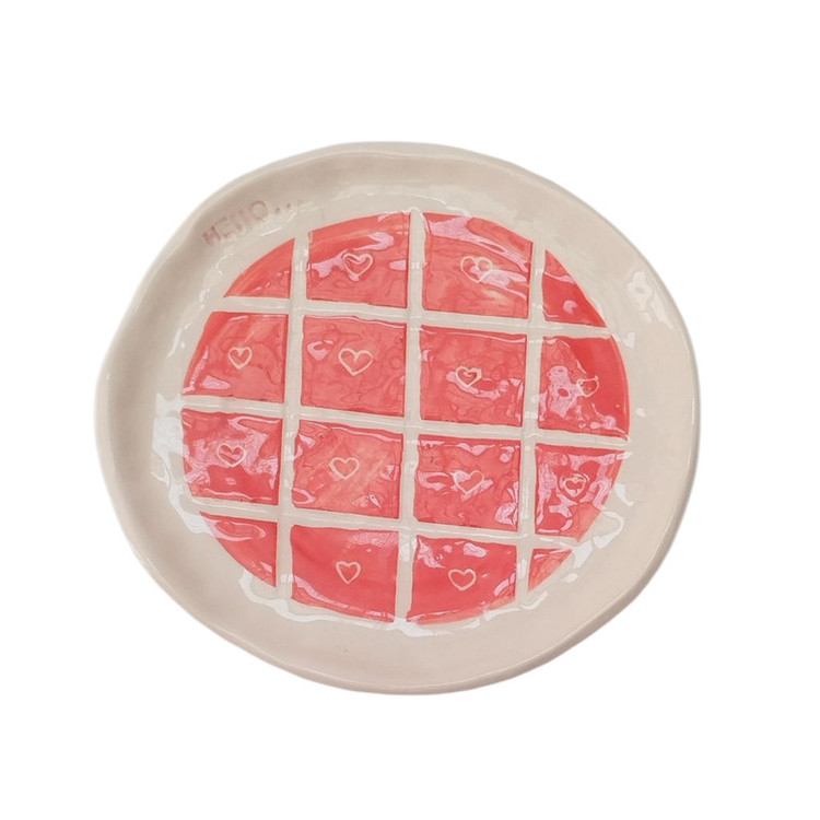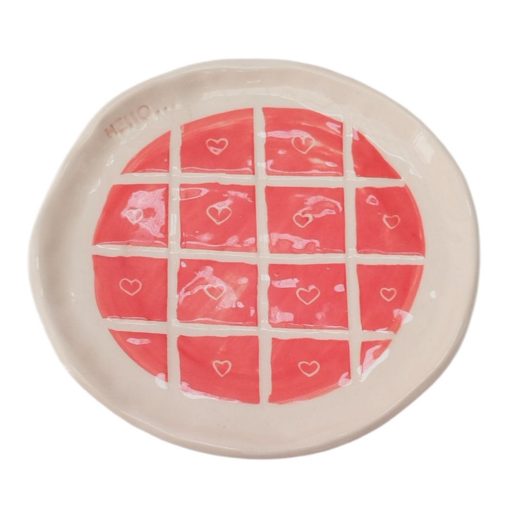 این ظرف سرامیکی دستساز با طراحی خاص و فرم دفرمه، ترکیبی از سادگی و انرژی مثبت است. رنگ قرمز پرشور با خطوط سفید و قلبهای کوچک، جلوهای شاد و دوستداشتنی به آن بخشیده است. هر ظرف بهصورت کاملاً دستی ساخته و لعابکاری شده و به همین دلیل، هیچ دو قطعهای دقیقاً شبیه هم نیستند. لبههای نرم و طبیعی ظرف، نشان از ساخت دستی آن دارد و حس اصالت و گرمای کار هنری را به فضا میآورد. این محصول میتواند برای سرو شیرینی، تنقلات، زیورآلات یا بهعنوان یک دکوری خاص روی میز کار یا قفسه استفاده شود. اثر حاضر با الهام از عشق و لطافت، توسط برند ایرانی فطرس سرامیک خلق شده و برای کسانی که به زیبایی در جزئیات و هنر دست ارزش میگذارند، انتخابی منحصربهفرد است.