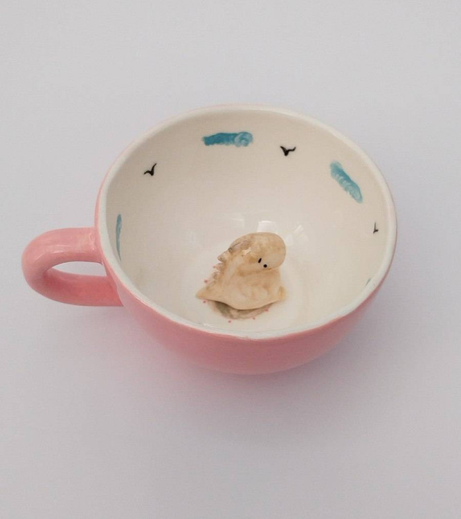 ماگ سرامیکی دایناسوری، خرید ماگ فانتزی، ماگ با عروسک سرامیکی، ماگ خاص برای هدیه، فروشگاه فطرس سرامیک