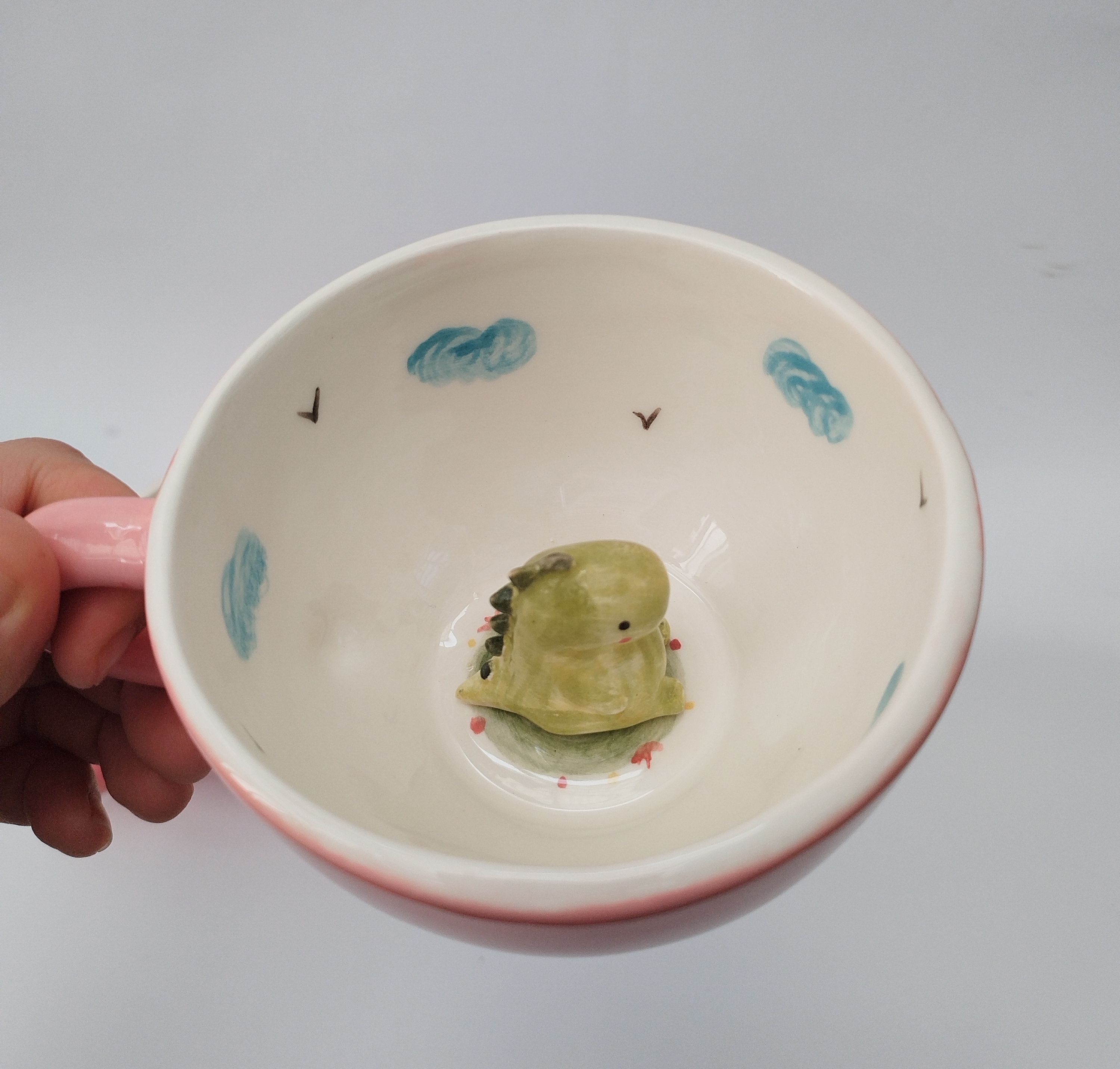 ماگ سرامیکی دایناسوری، خرید ماگ فانتزی، ماگ با عروسک سرامیکی، ماگ خاص برای هدیه، فروشگاه فطرس سرامیک