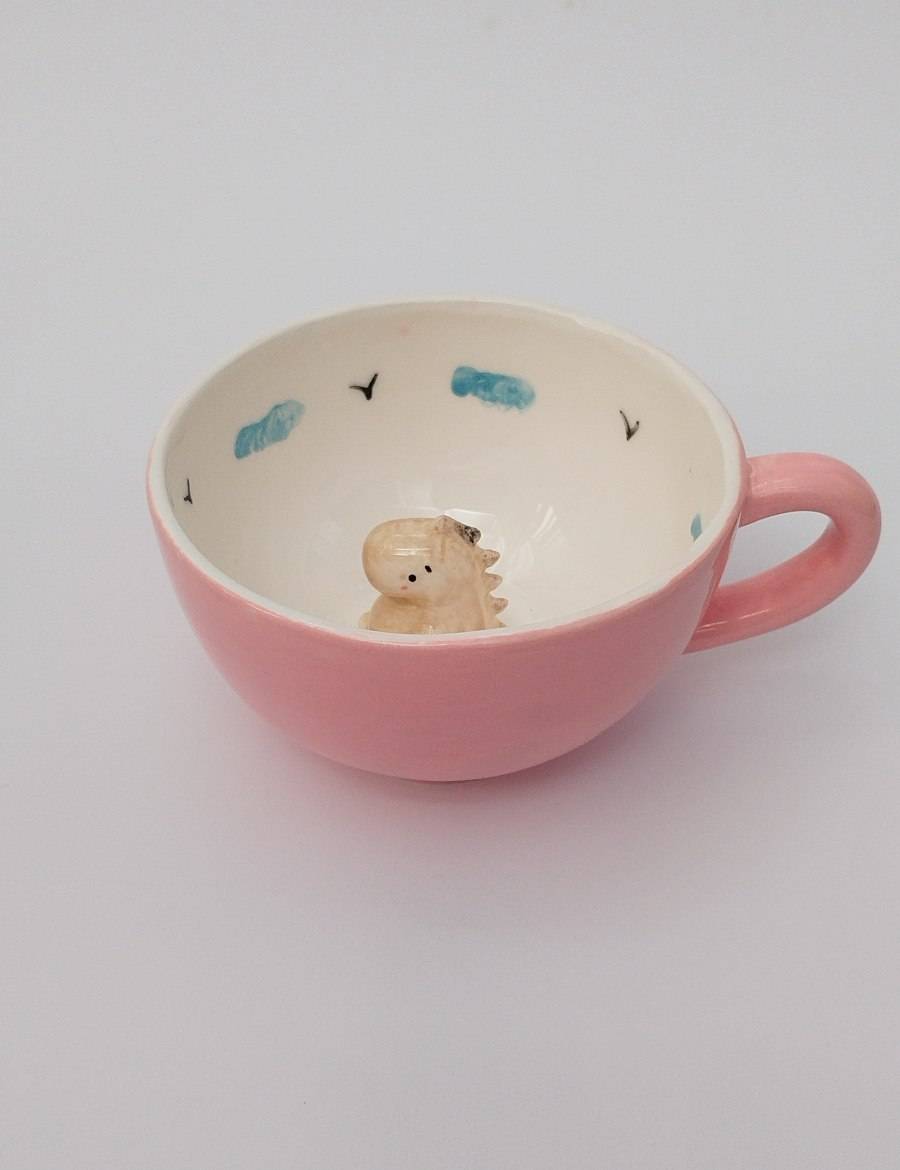 ماگ سرامیکی دایناسوری، خرید ماگ فانتزی، ماگ با عروسک سرامیکی، ماگ خاص برای هدیه، فروشگاه فطرس سرامیک