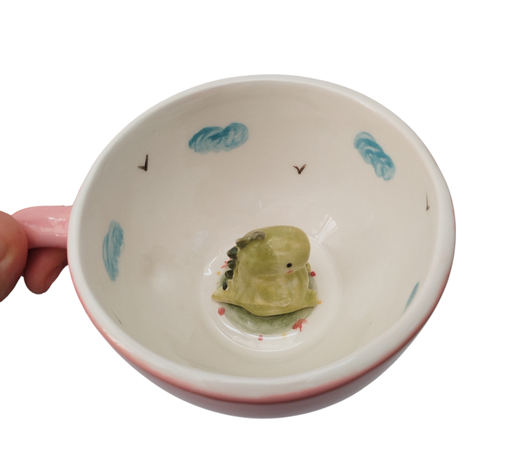 ماگ سرامیکی دایناسوری، خرید ماگ فانتزی، ماگ با عروسک سرامیکی، ماگ خاص برای هدیه، فروشگاه فطرس سرامیک