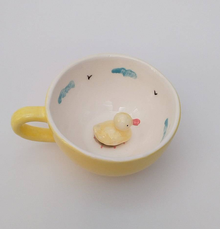 طراحی فانتزی ماگ با اردک سرامیکی داخل ماگ