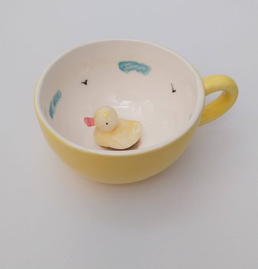 طراحی فانتزی ماگ با اردک سرامیکی داخل ماگ
