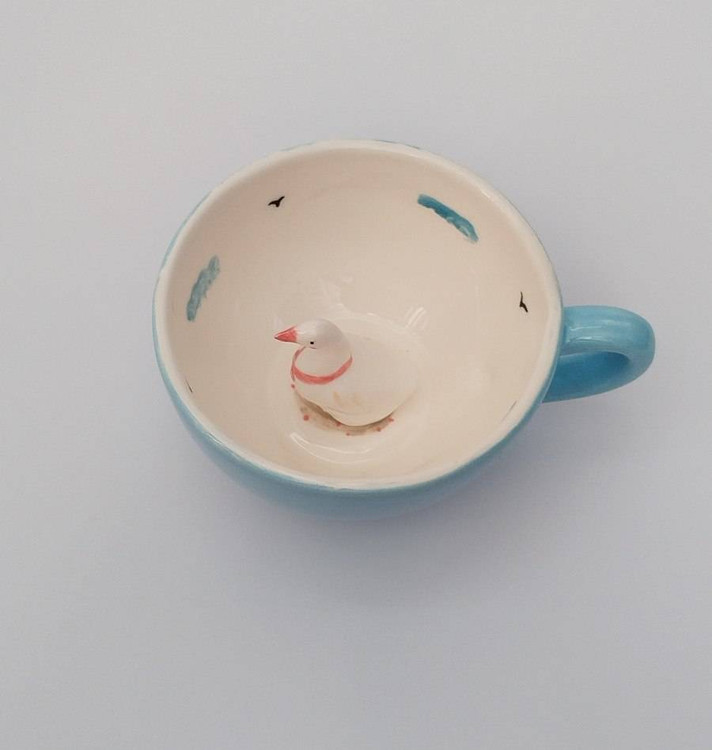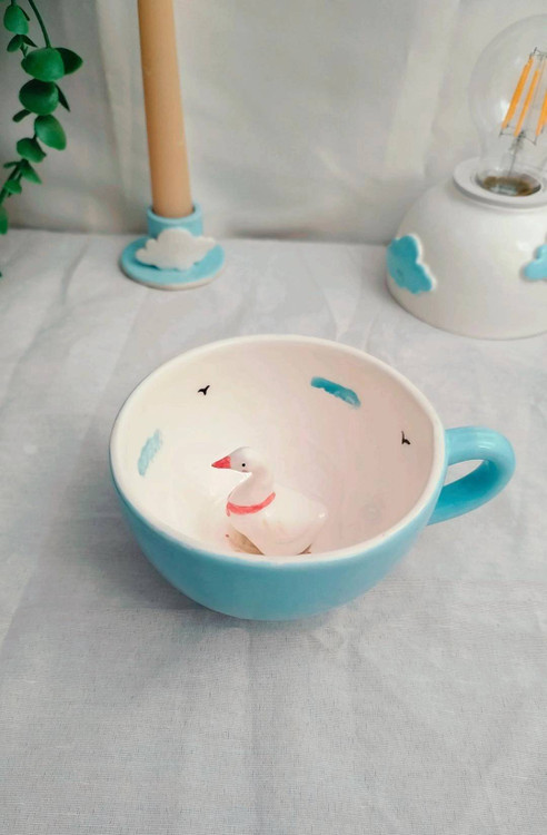این ماگ زیبا و خلاقانه از جنس سرامیک باکیفیت ساخته شده و طراحی منحصربهفرد آن شامل یک فیگور غاز سهبعدی در داخل ماگ است که هنگام نوشیدن، شما را غافلگیر میکند. رنگ زرد ملایم بیرونی همراه با نقاشی دستی ابر و پرنده در داخل ماگ، حس شادی و لطافت را القا میکند.