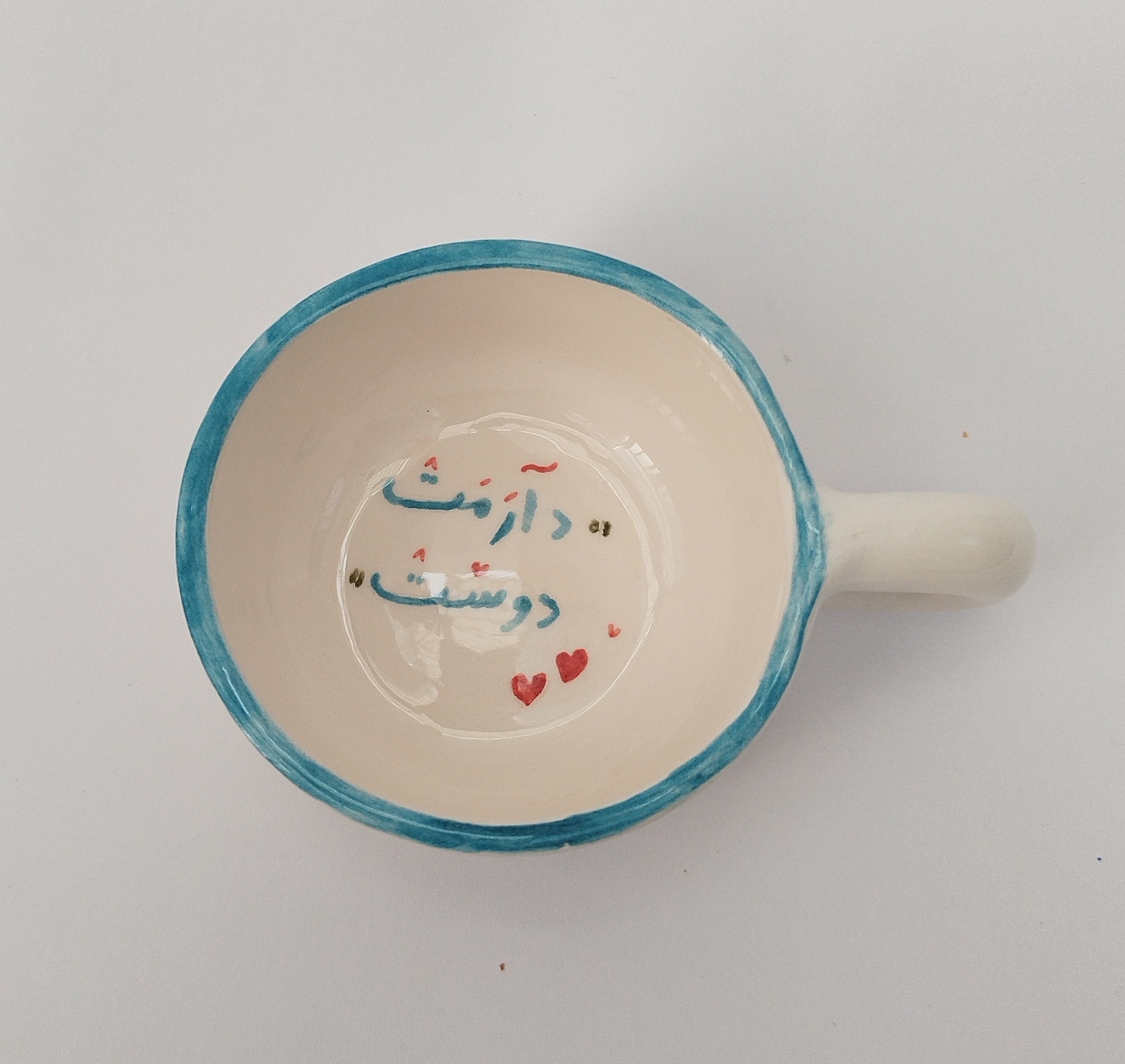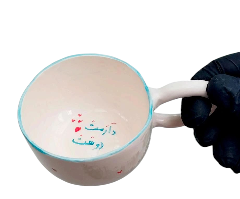این نیم ماگ دست ساز و زیبا، دارای متن "دارمت دوست" مناسب برای هدیه دادن به خودت یا عزیزانت میباشد.