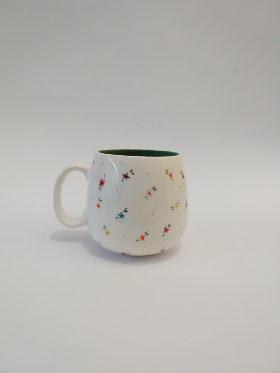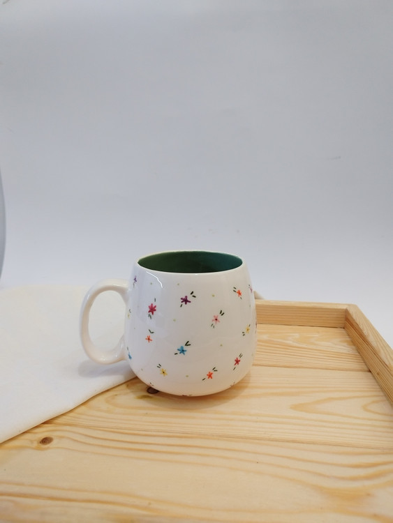 این ماگ خمره ای طرح گل گلی زیبا که تماماً نقاشی شده با دست میباشد. و داخل ماگ رنگ سبز زیبا میباشد.