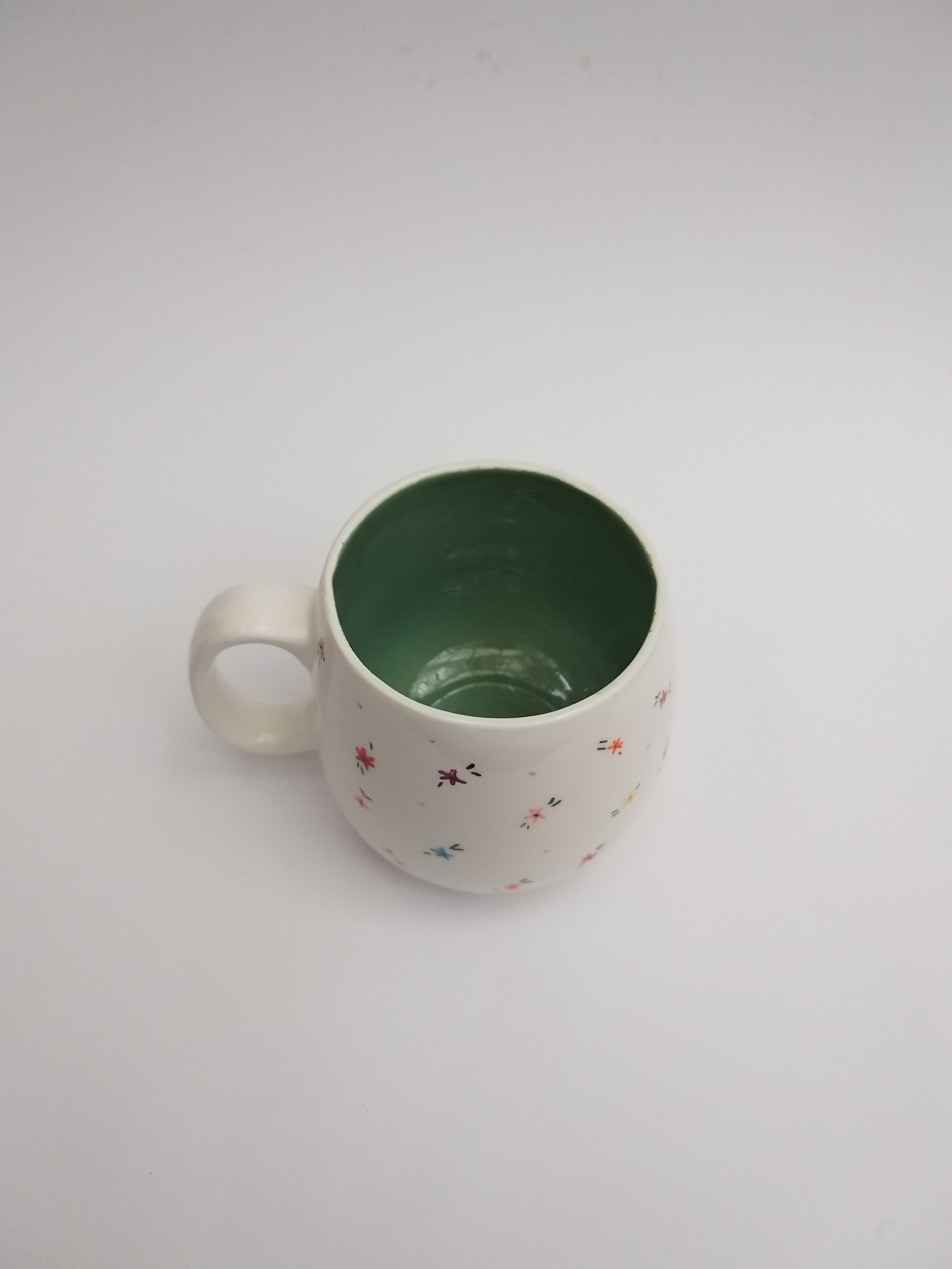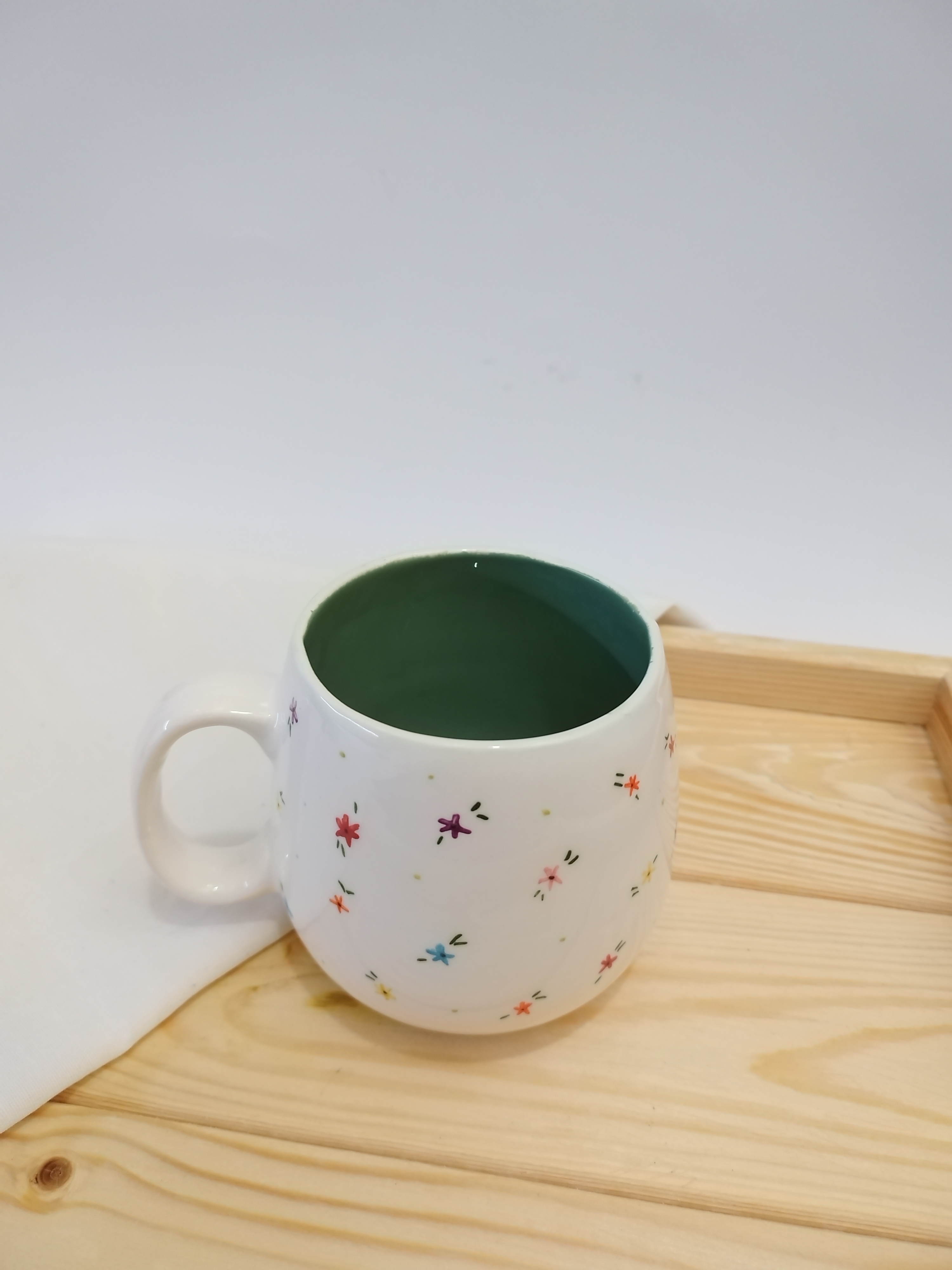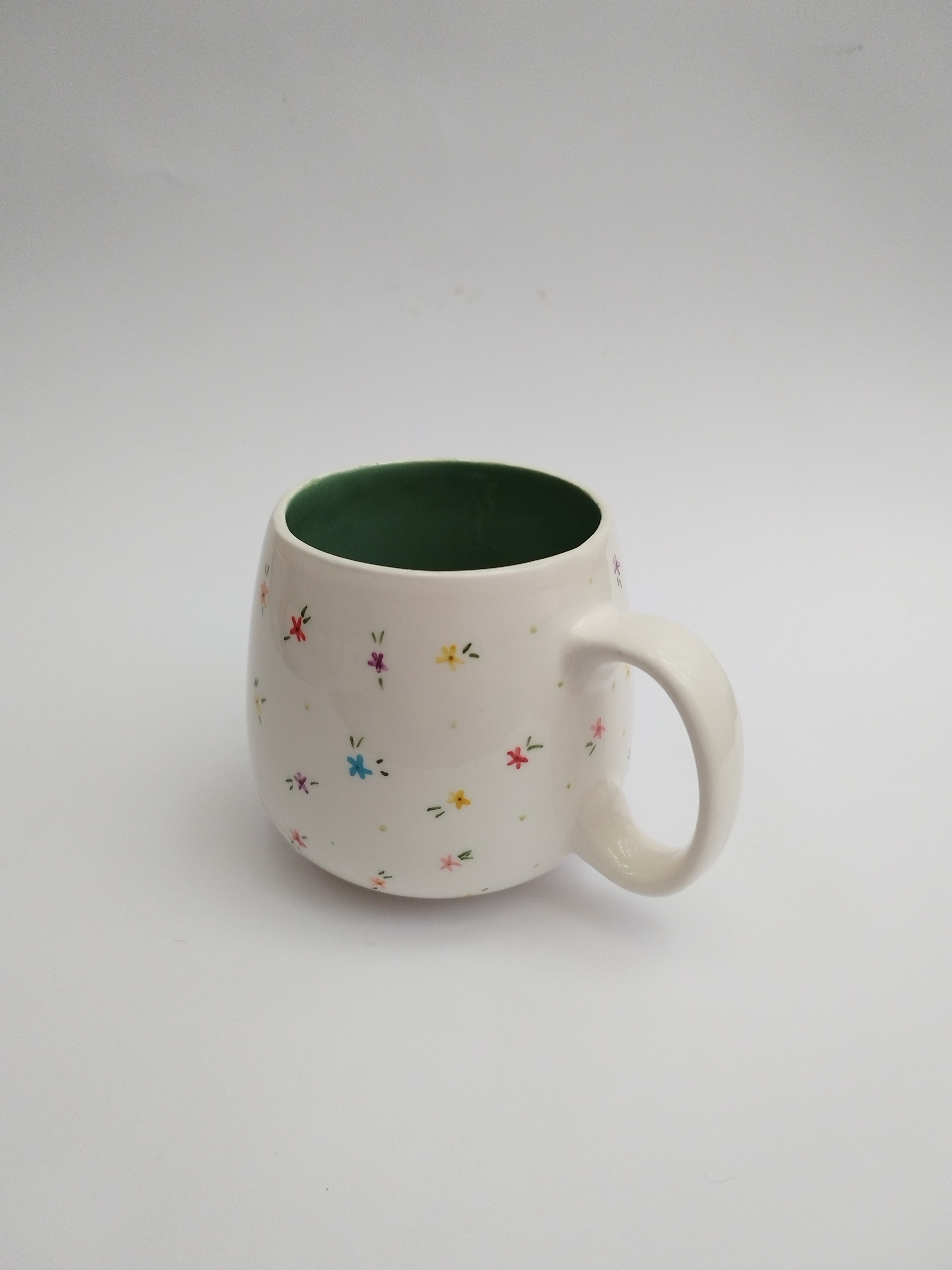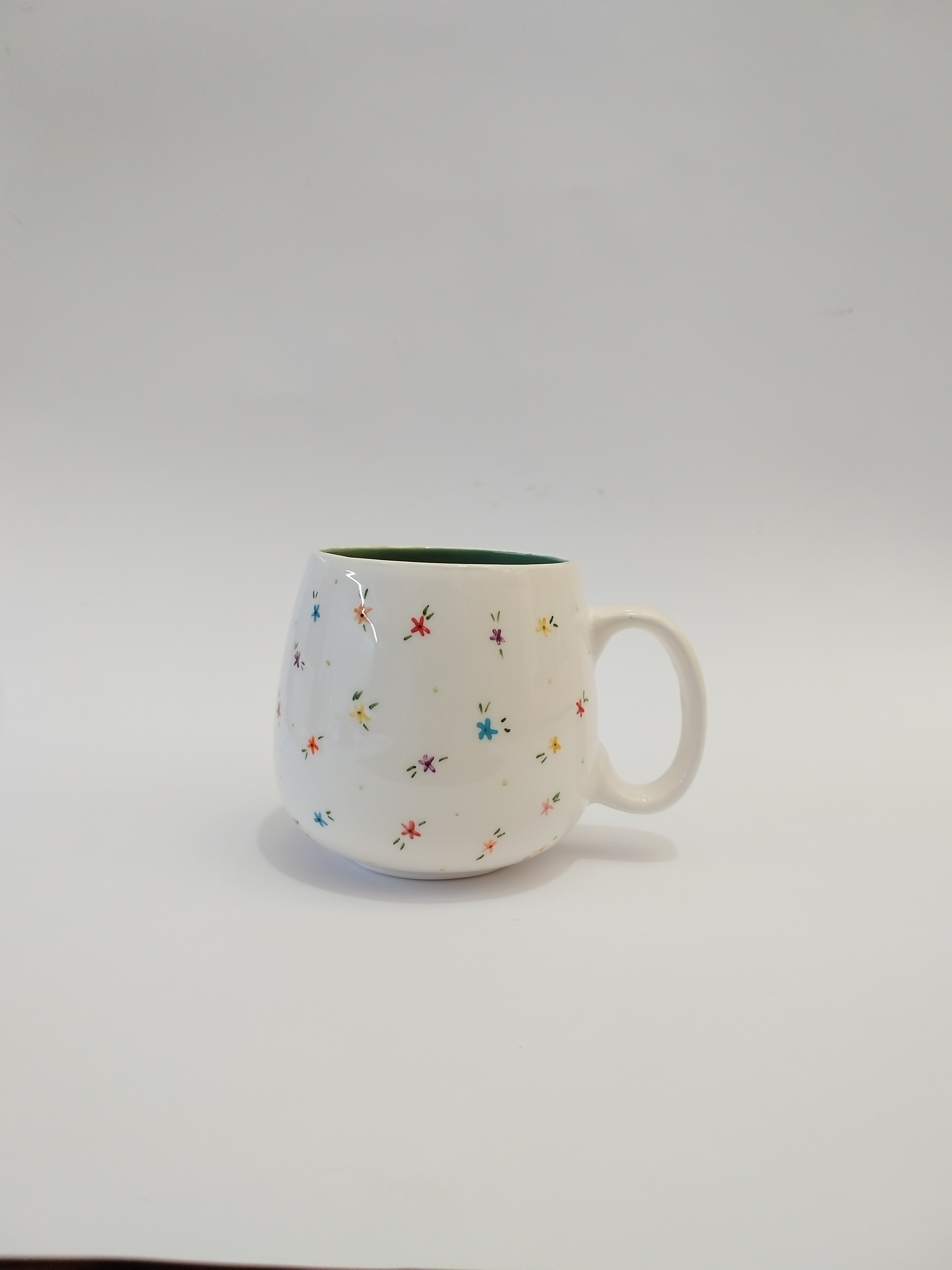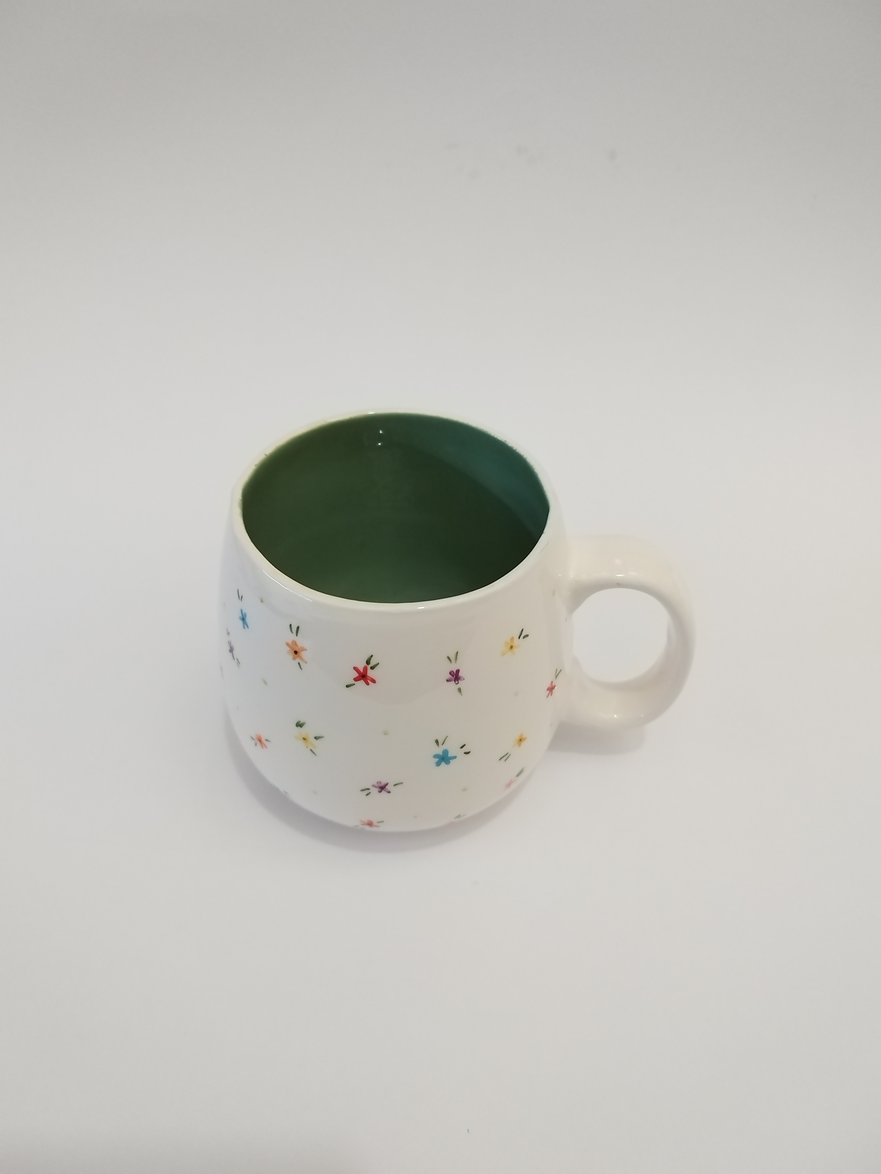 این ماگ خمره ای طرح گل گلی زیبا که تماماً نقاشی شده با دست میباشد. و داخل ماگ رنگ سبز زیبا میباشد.