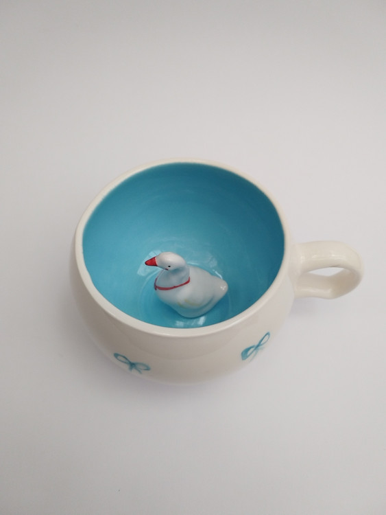 این ماگ زیبا و خلاقانه از جنس سرامیک باکیفیت ساخته شده و طراحی منحصربهفرد آن شامل یک فیگور غاز سهبعدی در داخل ماگ است که هنگام نوشیدن، شما را غافلگیر میکند. رنگ آبی آسمانی داخل ماگ همراه با نقاشی دستی پاپیون آبی در بیرون ماگ، حس شادی و لطافت را القا میکند.