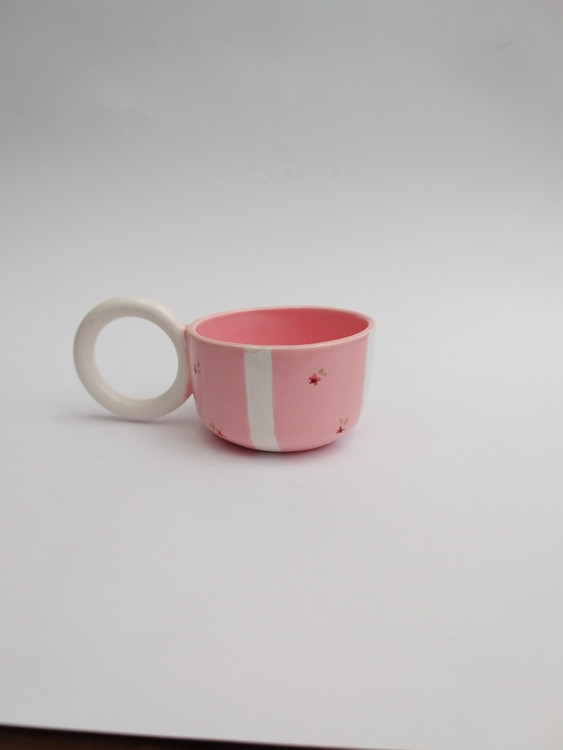 این فنجان سرامیکی دستساز با ترکیب رنگ صورتی ملایم و خطوط ظریف، انتخابی دوستداشتنی برای لحظههای آرام نوشیدن قهوه یا چای است. طراحی مینیمال اما گرم آن، حس لطافت و سادگی را همزمان منتقل میکند. هر فنجان بهصورت کاملاً دستی ساخته شده و همین موضوع باعث میشود هیچ دو نمونهای دقیقاً شبیه هم نباشند؛ ویژگیای که ارزش هنری آن را دوچندان میکند.