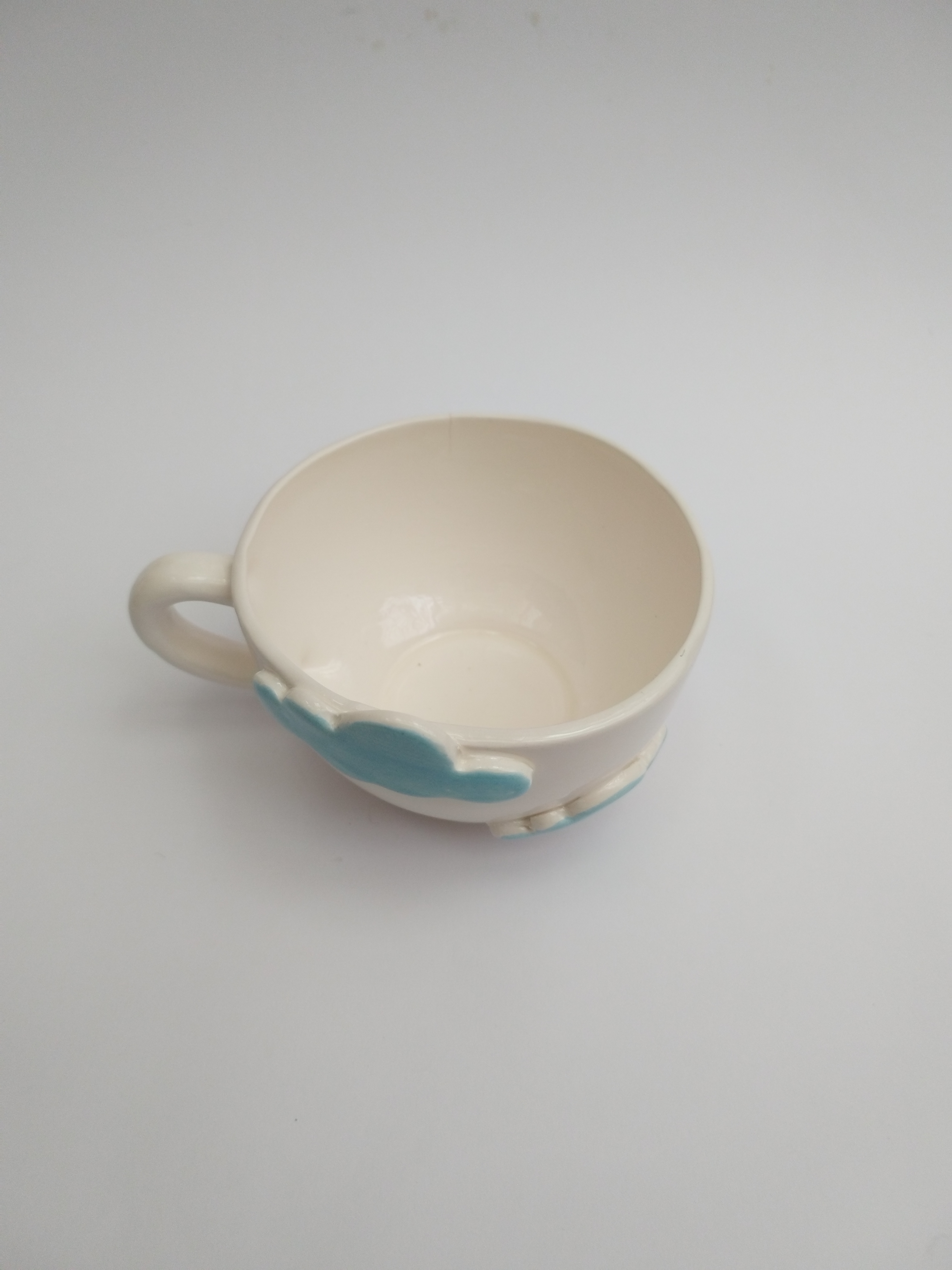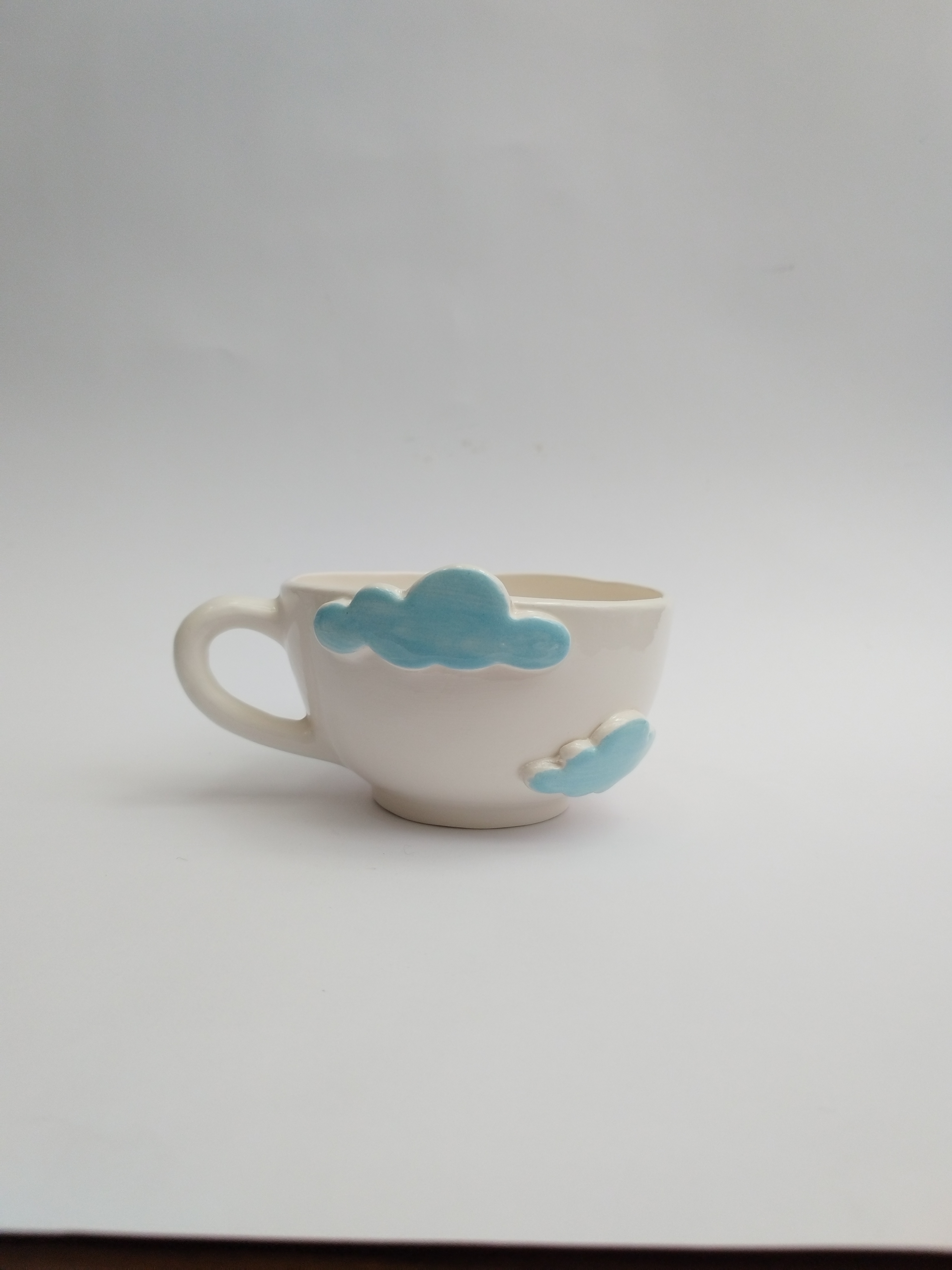 فنجان سرامیکی الهامگرفته از آسمان و ابر، با ابرهای آبی برجسته که روی بدنه کار شدهاند، حس آرامش و خیالانگیزی را به میز شما میآورد. این فنجان دستساز انتخابی عالی برای کسانی است که به جزئیات لطیف و طراحیهای فانتزی علاقه دارند.