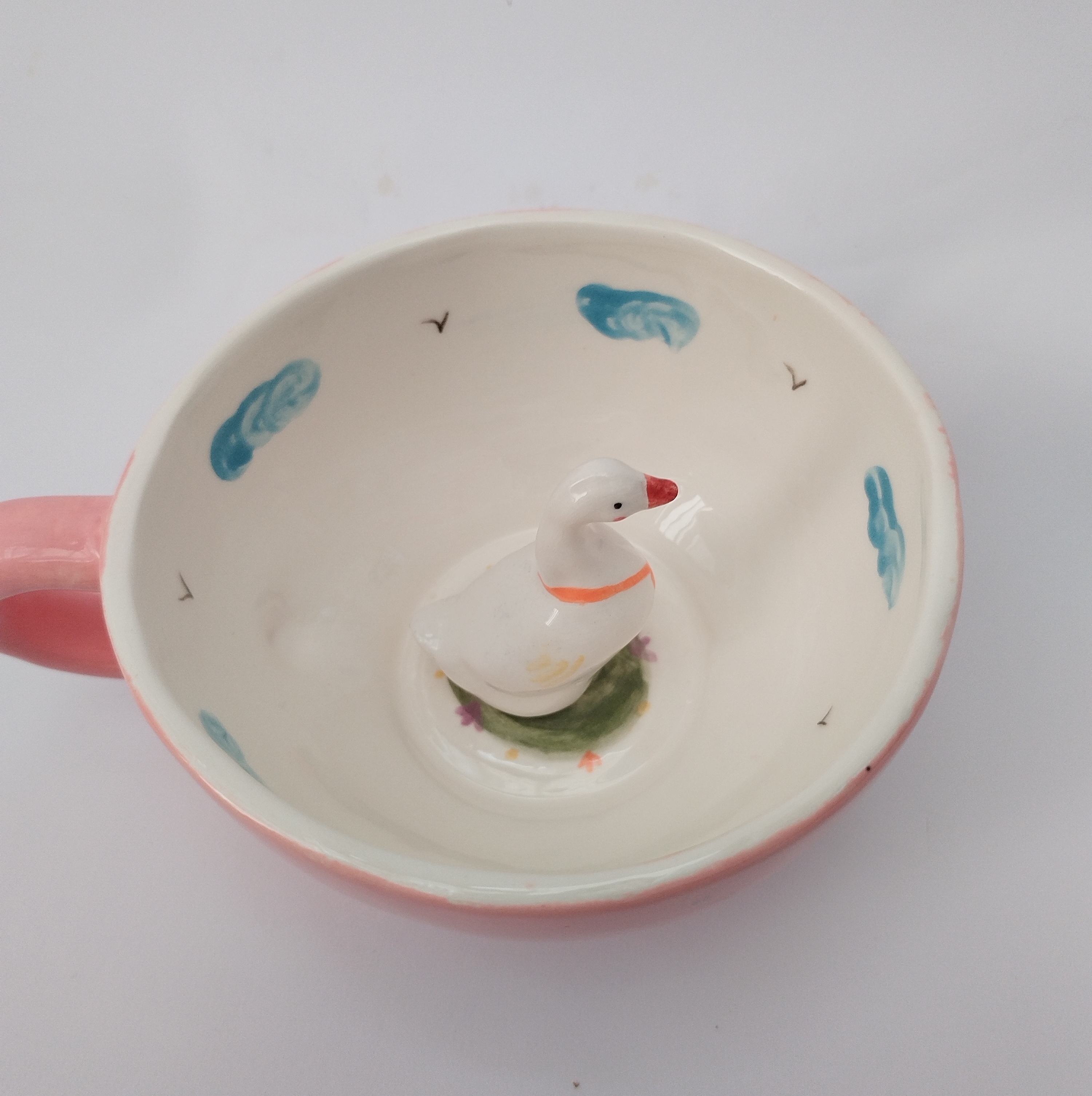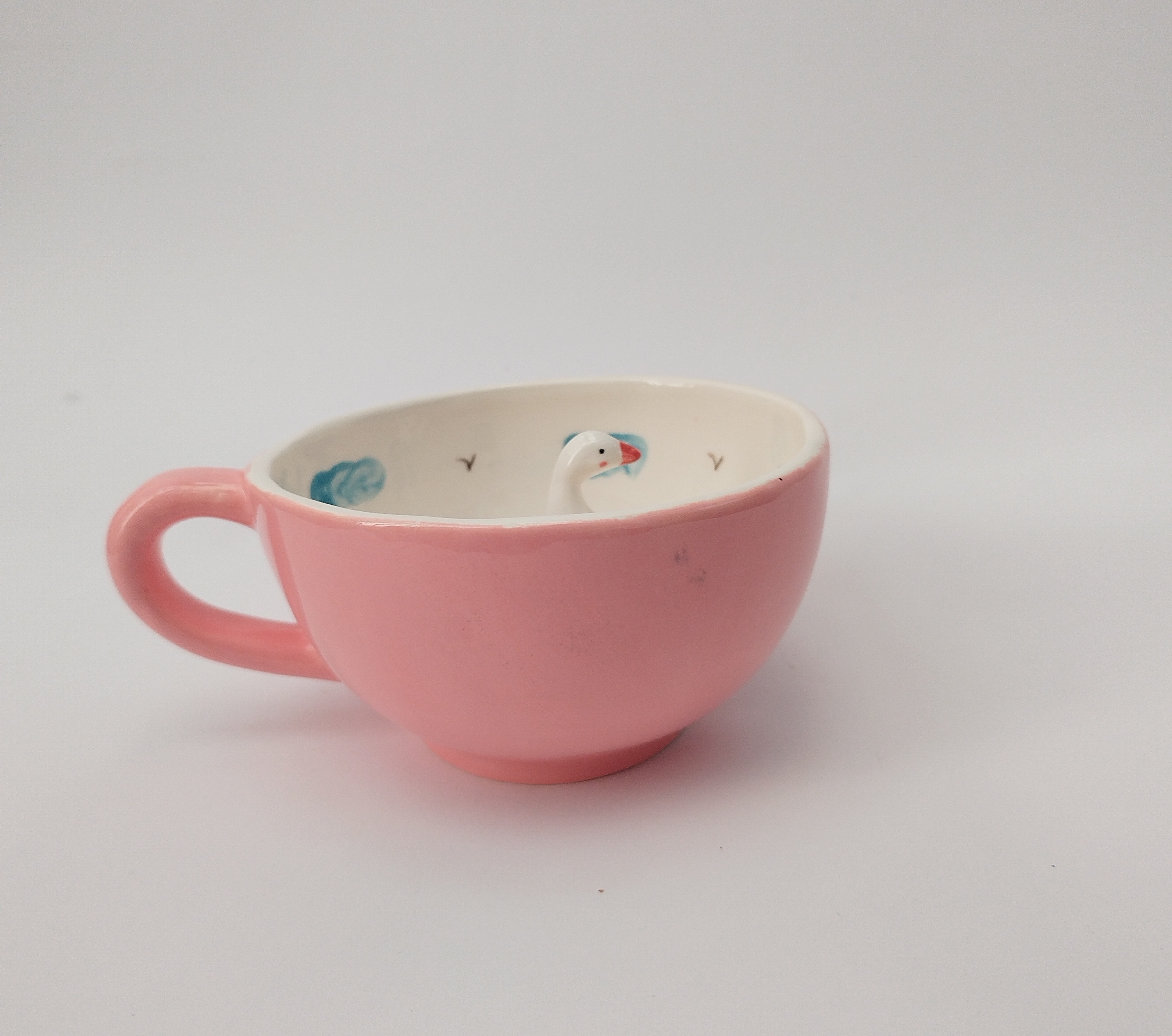 این ماگ سرامیکی فانتزی دستساز طرح غاز میباشد که با نقاشی کار دست که به صورت زیر لعابی اعمال شده، تلفیق شده است. و نقاشی ها به مرور پاک یا کمرنگ نمی شود.