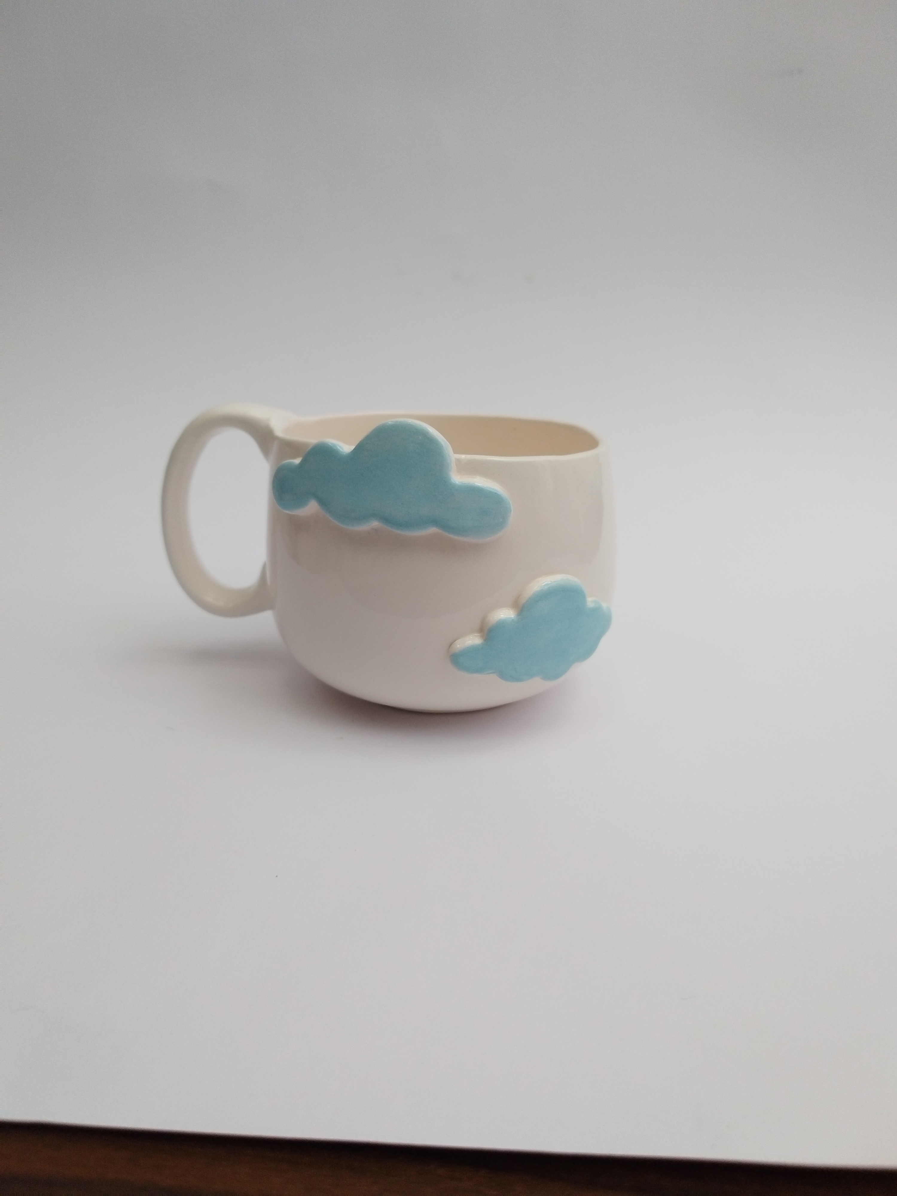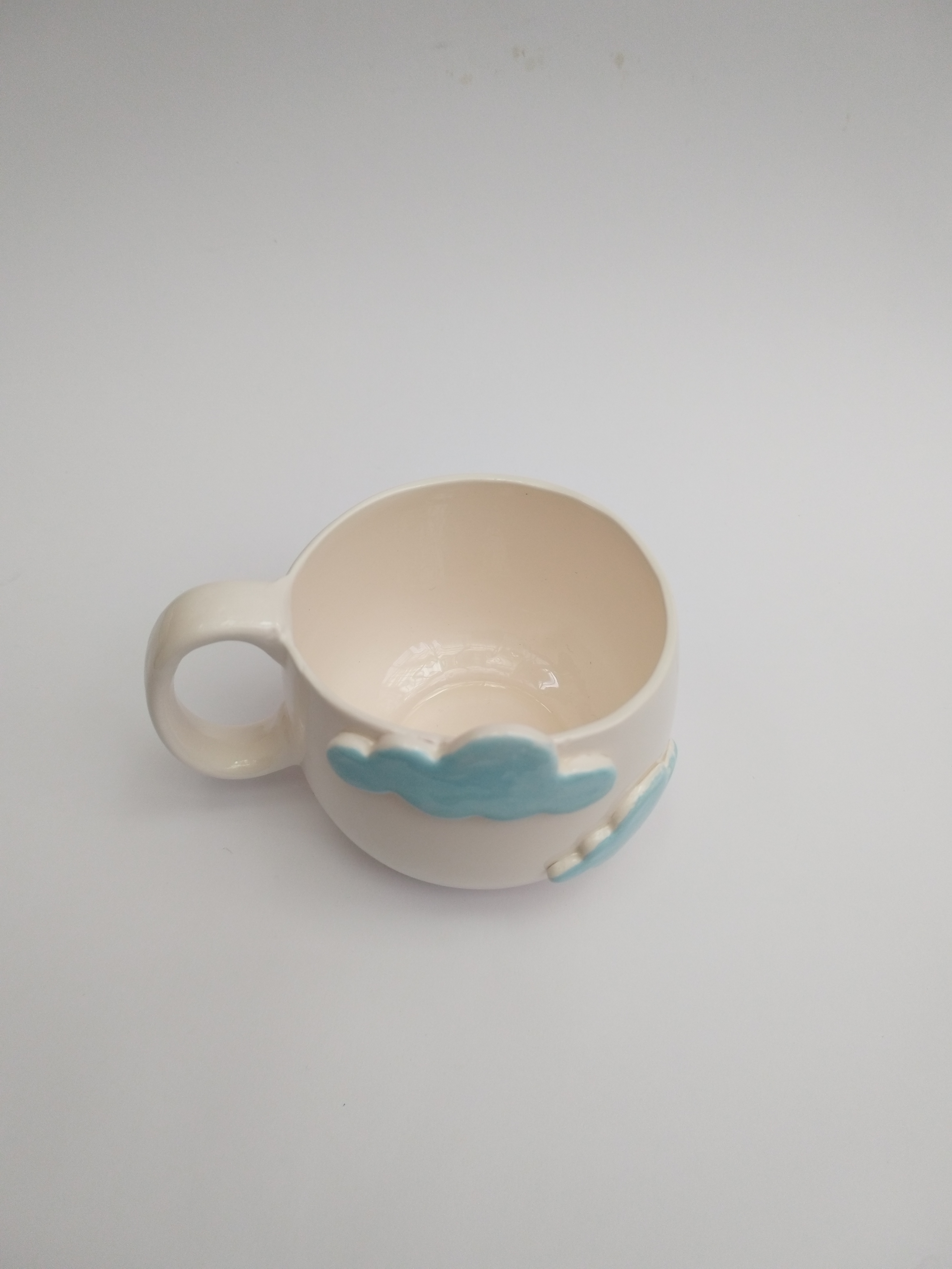 فنجان سرامیکی الهامگرفته از آسمان و ابر، با ابرهای آبی برجسته که روی بدنه کار شدهاند، حس آرامش و خیالانگیزی را به میز شما میآورد. این فنجان دستساز انتخابی عالی برای کسانی است که به جزئیات لطیف و طراحیهای فانتزی علاقه دارند.