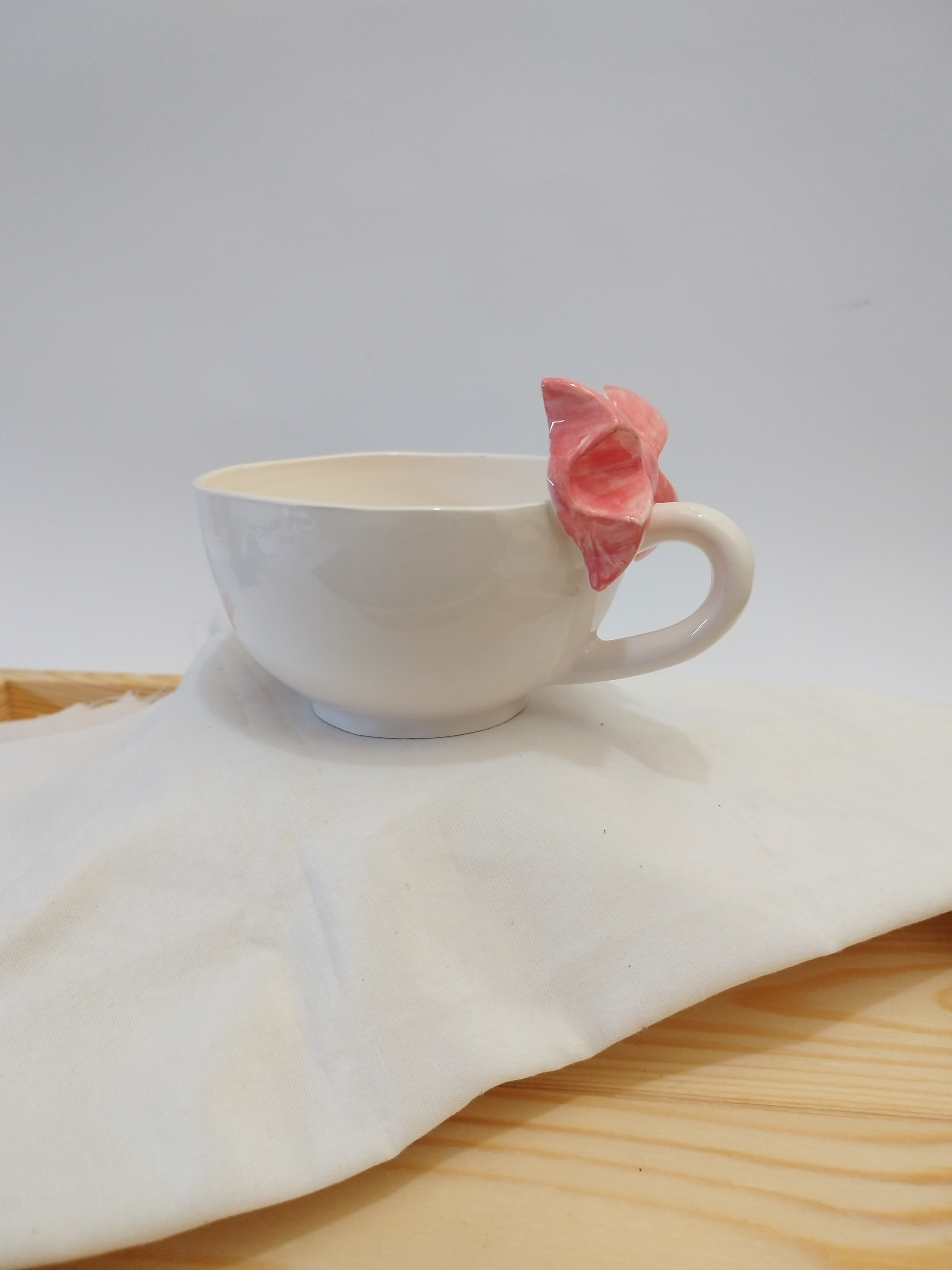 این فنجان سرامیکی دستساز با پاپیون برجسته صورتی، نمادی از ظرافت و حس دخترانه است. طراحی خاص آن، فنجان را به انتخابی متفاوت برای سرو قهوه، چای یا اسپرسو تبدیل کرده است.